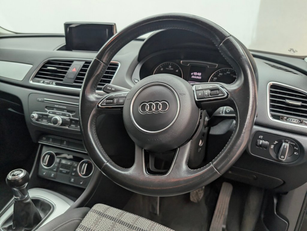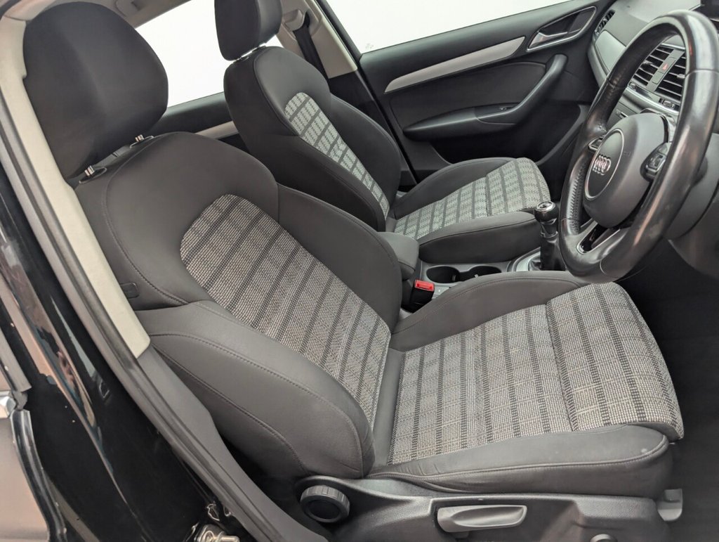 Great looking Audi Q3 in Black with Climate Control - SAT NAV - DAB Radio - Body-Coloured Door Mirrors - Electrically Adjustable and Heated with Integrated LED Indicator Signals Service History: 27/02/2020 at 45k, 20/02/2021 at 52k, 19/02/2022 at 59k, 24/02/2023 at 6k, 26/02/2024 at 74k Reliable and refined, this Audi Q3 2.0 TDI SE delivers 150PS of diesel efficiency with a smooth manual gearbox. Euro 6 compliant, it offers premium comfort, spacious SUV practicality, and Audi's signature build quality—perfect for everyday driving with a touch of class.