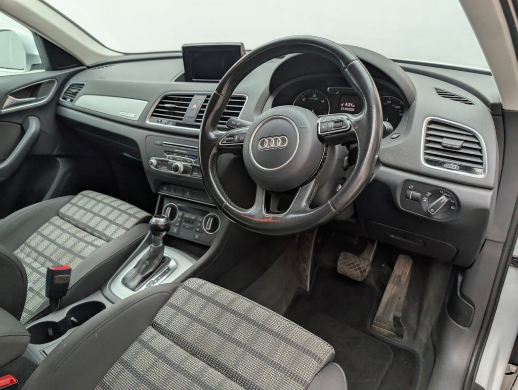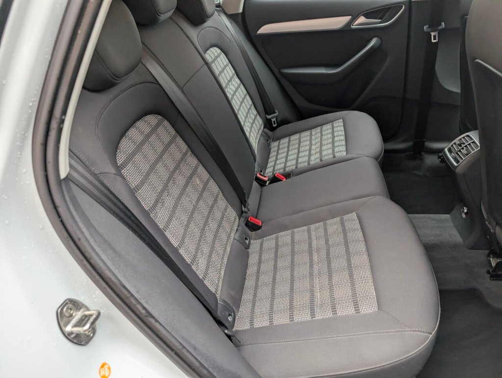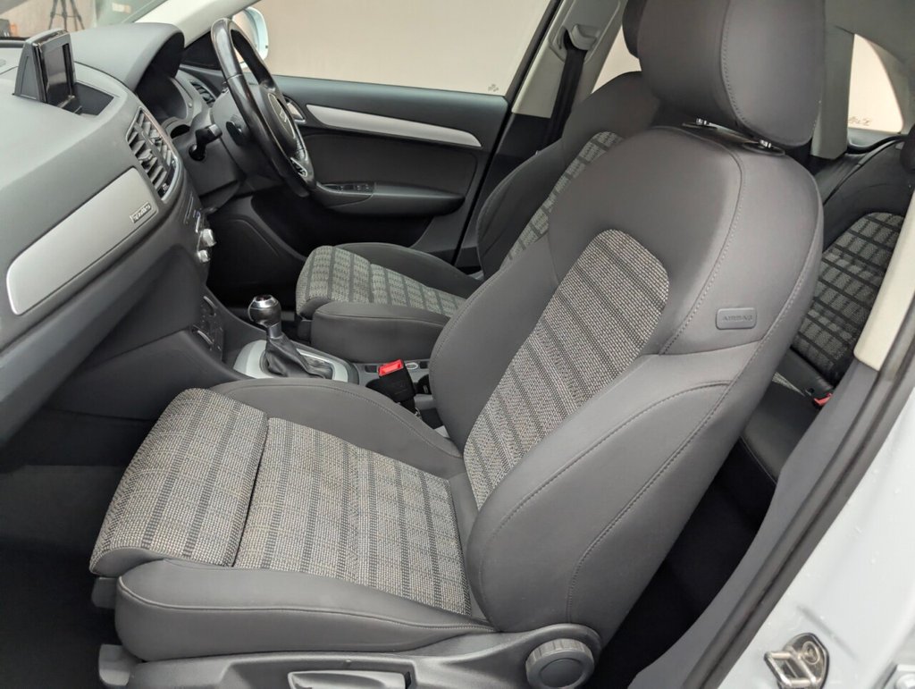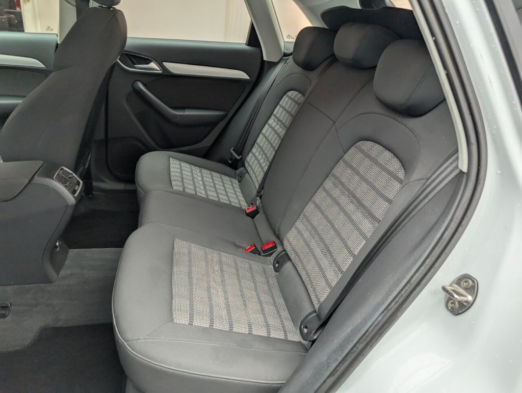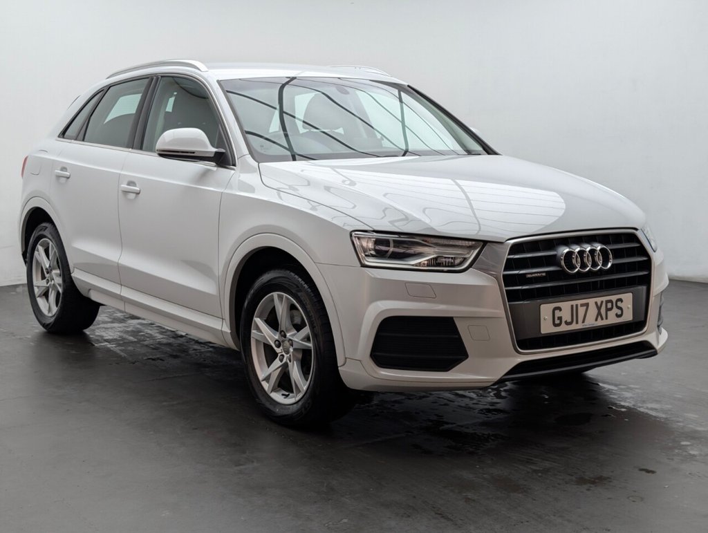 Great looking Audi Q3 in white with Bluetooth - Rear Parking Sensors - DAB Radio - Alloys This 2017 Audi Q3 TDI SE boasts an exceptionally low mileage of just 61,000 miles, a significant advantage for a vehicle of its age, and comes with a clear vehicle history check. This four wheel drive model features a 2.0 litre Euro 6 diesel engine, offering an impressive fuel economy of 57 miles per gallon. The SE trim includes practical features such as a light and rain sensor which automatically activates the headlights, rear parking sensors to aid manoeuvring, and a Bluetooth interface for seamless phone connectivity. Further enhancing your driving experience, this Q3 is equipped with Xenon Plus headlights complemented by LED daytime running lights for superior visibility, and dual zone electronic climate control to ensure comfort for all occupants. Its performance is notable with an acceleration of 0-60mph in 9.0 seconds. These highlights, including its low CO2 emissions and low insurance group, demonstrate how this Audi Q3 stands out from other vehicles in its class, offering an economical and well equipped package. The MOT is valid until March 2026, providing peace of mind for the coming year.
