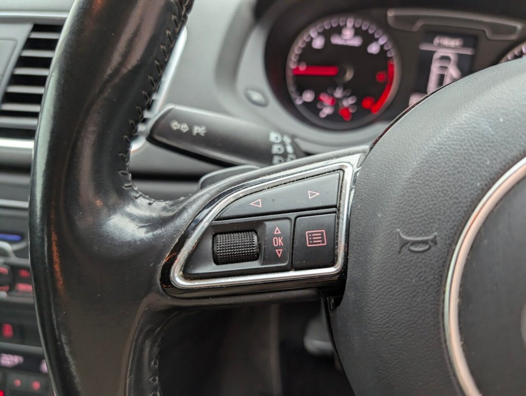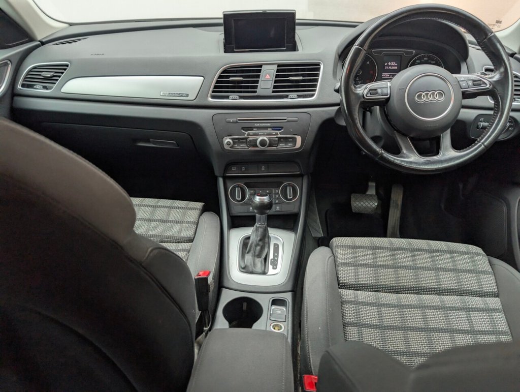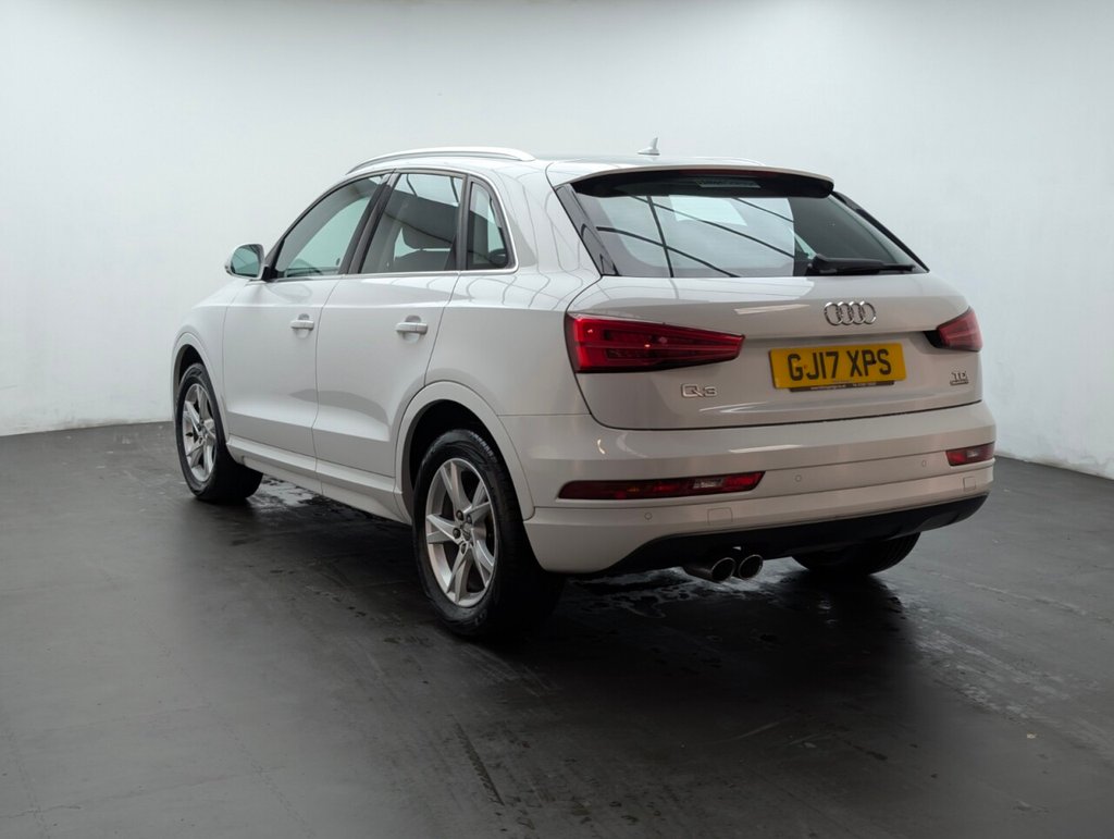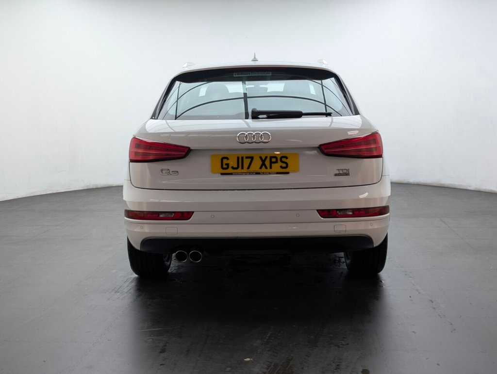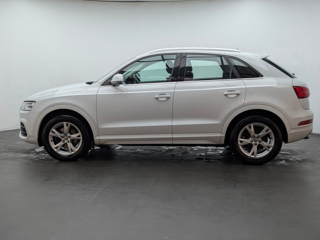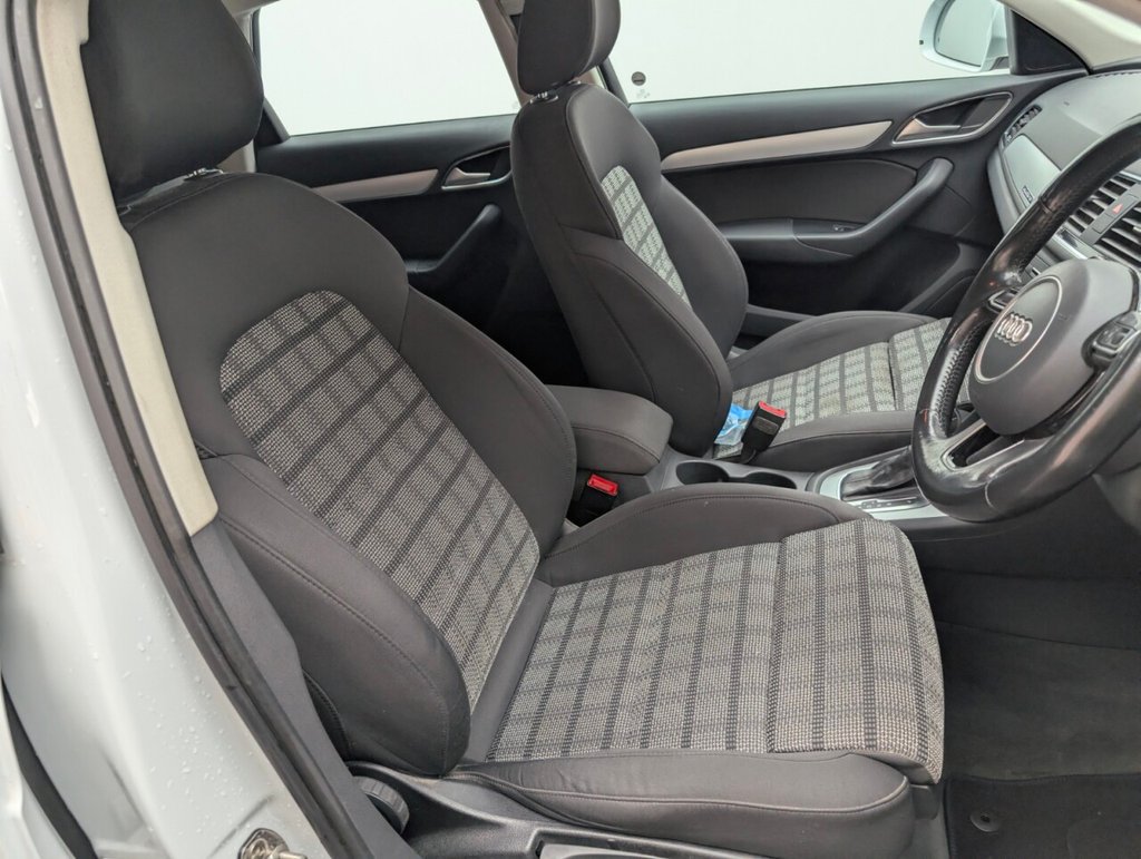 Great looking Audi Q3 in white with Bluetooth - Rear Parking Sensors - DAB Radio - Alloys This 2017 Audi Q3 TDI SE boasts an exceptionally low mileage of just 61,000 miles, a significant advantage for a vehicle of its age, and comes with a clear vehicle history check. This four wheel drive model features a 2.0 litre Euro 6 diesel engine, offering an impressive fuel economy of 57 miles per gallon. The SE trim includes practical features such as a light and rain sensor which automatically activates the headlights, rear parking sensors to aid manoeuvring, and a Bluetooth interface for seamless phone connectivity. Further enhancing your driving experience, this Q3 is equipped with Xenon Plus headlights complemented by LED daytime running lights for superior visibility, and dual zone electronic climate control to ensure comfort for all occupants. Its performance is notable with an acceleration of 0-60mph in 9.0 seconds. These highlights, including its low CO2 emissions and low insurance group, demonstrate how this Audi Q3 stands out from other vehicles in its class, offering an economical and well equipped package. The MOT is valid until March 2026, providing peace of mind for the coming year.