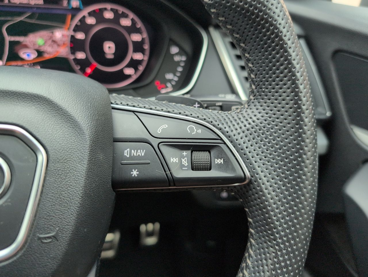 - High Multi-function 3-Spoke Leather Steering Wheel with Grips in Perforated Leather and S Badging with Gear-Shift Paddles