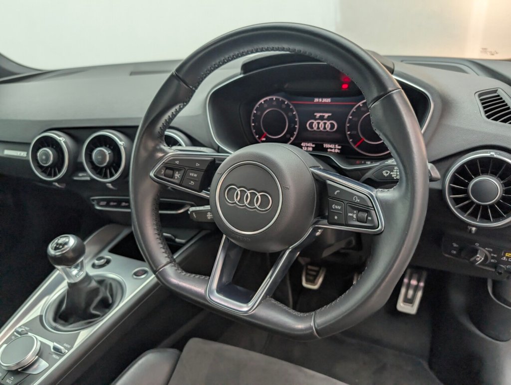 Iconic Design. Sporty Performance. Pure Driving Pleasure - 18in Alloy Wheels, Bluetooth, Cruise Control, Front Sports Seats, Manual Air Conditioning, Rear Parking Sensors. Service History: 6 Services. Last serviced on 09.04.2024 at 35797 miles. The Audi TT 1.8 TFSI Sport is a stylish and compact coupe that combines striking design, sporty handling, and advanced technology. With its sleek profile, responsive manual gearbox, and performance-focused engineering, the TT delivers an exhilarating driving experience. Powered by a 1.8-litre TFSI petrol engine producing 180 PS, this coupe offers lively acceleration and precise handling. Its Euro 6 (s/s) compliance ensures low emissions, making it suitable for city streets and longer journeys alike.