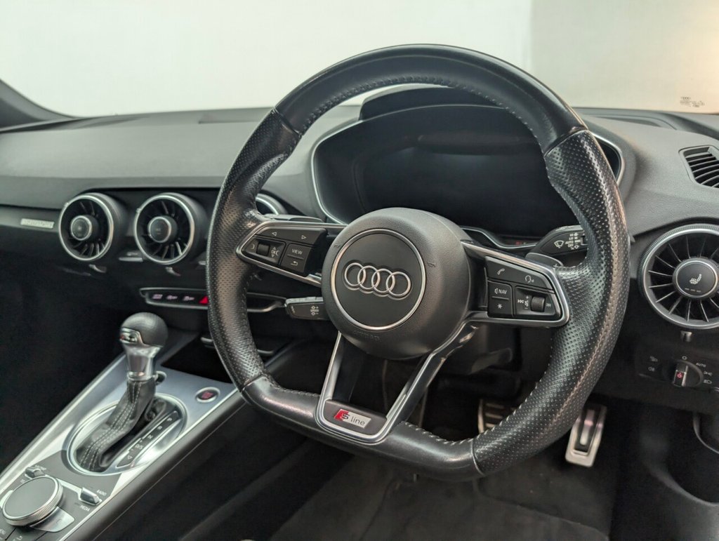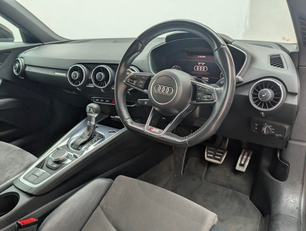 Rear Parking Sensors, Cruise Control, 19in Alloy Wheels, DAB Digital Radio. 4 Services, Last Serviced at 49,894 Miles on 28/04/2025. Feel the rush behind the wheel of the iconic Audi TT S line Coupe. Powered by a turbocharged 2.0L TFSI engine delivering 230PS, paired with the ultra-smooth S Tronic dual-clutch transmission and quattro all-wheel drive, this coupe offers thrilling performance and razor-sharp handling on every drive. For those who demand exhilarating performance, stunning design, and advanced tech — the Audi TT delivers the ultimate driving experience.