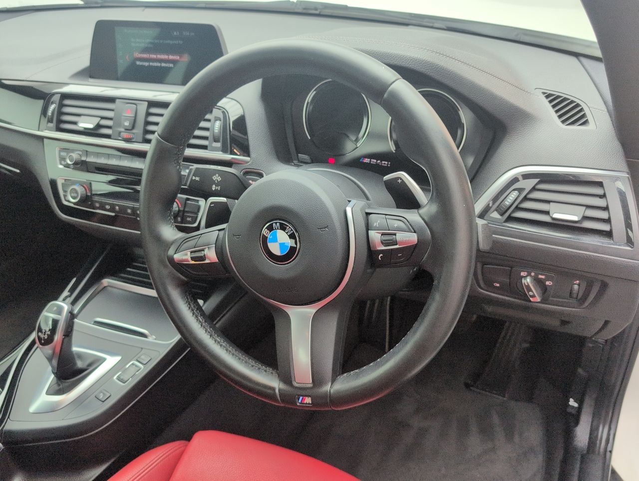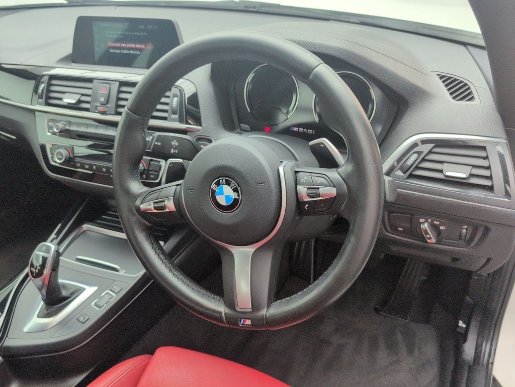 12V Power Socket - Centre Console, 12V Power Socket - Passenger Footwell, 18in Alloy Wheels - M Light Double Spoke - Ferric Grey - 436M, 18in Alloy Wheels - M Light Double-Spoke Style 719 M Jet Black, Active Differential Brake - ADB Sport - Electronic Differential Lock in DSC-Off Mode, Air Conditioning - Automatic with Two-Zone Control, Airbags, Airblades - Ferric Grey, Alarm System - Thatcham 1 with Remote Control and Engine Immobiliser, Alpine White, Ambient Lighting - Switchable, Armrest - Front with Sliding Adjustment, Automatically Dimming Rear View Mirror, Battery Age Recognition Function, Battery Safety Cut Off, Bluetooth Hands-Free Facility with USB Audio Interface and Audio Streaming, BMW ConnectedDrive Online Services, BMW ConnectedDrive Services, BMW Emergency Call, BMW Mobility System, BMW Navigation, BMW Professional Radio with Single CD Player - with MP3 Playback Compatibility, BMW TeleServices, Brake Pad Wear Indicator, Bumper - Rear with High Gloss Black Finisher, Bumper System - Front and Rear, Central Locking Switch - Doors - Fuel Filler Cap - Luggage Compartment, Check Control Warning System for Monitoring of Lights and Door-Luggage Compartment Open Warning, Child Seat ISOFIX Attachment for the Two Outer Rear Seats, Coat Hooks - Integrated into Rear of B Pillar, Condition Based Service, Crash Sensor, Cup Holders x2 with Sliding Cover and Inlay Mat, DAB Digital Radio, Dakota Leather - Coral Red with Black Highlight with Black Interior, Daytime Driving Lights, Direction Indicator - Side Repeaters - Integrated in Exterior Mirrors, Direction Indicator Lights - Clear Lenses, Door Mirrors - Ferric Grey Housing, Door Sill Finishers - M240i Designation, Drive Performance Control - ECO PRO - Comfort - Sport - Sport Plus, DSC - Dynamic Stability Control Plus, Dynamic Brake Lights, ECO PRO Mode, Electric Windows - Front and Rear with Open-Close Fingertip Control - Anti-Trap Facility and Comfort Closing Function, Engine Cover with BMW Roundel and TwinPower Turbo Designation, Enhanced Bluetooth Telephone Preparation with USB Audio Interface and Voice Control, EPS - Electric Power Steering, Exhaust Tailpipes - Dark Chrome - Twin - Round - Split, Extended Lighting, Extended Storage, Exterior Mirrors - Electrically Folding with Anti Dazzle, Exterior Mirrors Electrically Adjustable, Exterior Parts in Body Colour, Exterior Trim - High-Gloss Shadowline, First Aid Kit and Warning Triangle, Floor Mats - Velour, Full Black Panel Display, Gearshift Lever with M Designation - Short-Shift, Glove Box, Handbrake Lever and Gear Lever in Leather, Head Restraints - Rear and Folding, Headlining - Anthracite, Heat Protection Glazing with Green Tint, High Level Third Brake Light, Instrument Cluster, Interior Comfort Package, Interior Lighting - Front Centre Over Interior Mirror and Rear Centre, Interior Trim - Aluminium Hexagon with Estoril Blue Finisher, Interior Trim - High-Gloss Black with Pearl Chrome Finisher, Kidney Grille - Chrome Extra-Wide Eight High-Gloss Black Vertical Slats, Lashing Eyes in Luggage Compartment at Sill x2, LED Headlights, LED Rear Light Bars, Lights-On Warning by Audio Warning Signal When Ignition is Switched Off, Locking Wheel Bolts, Luggage Compartment - Light, Luggage Compartment Access via BMW Roundel, M Aerodynamic Bodystyling with Airblades in Ferric Grey - No Front Fog Lights, M Logo Designation in Unique Dark Chrome on Left and Right Front Wings, M Rear Spoiler, M Sport Braking System, M Sport Suspension, Model Designation, Multifunction Controls for Steering Wheel, OBC - On-Board Computer, Oil Sensor For Level and Grade - Warning by Check Control System, Oil Temperature Display via On-Board Computer Shown in Central Screen in Instrument Cluster, Optimum Shift Indicator, PDC - Park Distance Control - Front and Rear, PDC - Park Distance Control - Rear, Personal Profile - Extended, Rain Sensor with Automatic Headlight Activation, Real Time Traffic Information, Rear Fog Light, Rear Seat Headrests - Outer Headrests Folding, Rear Window Aerial, Remote Control with Integrated Key with Insert in Blue, Reversing Assist Camera, Reversing Light in Rear Light Clusters, Seat Belt Security Check for Driver and Front Passenger, Seats - 60-40 Split Folding Rear, Shark Fin Aerial, Side Armrests - Front and Rear Integrated into Door Trim, Side Impact Protection, Sport Instrument Cluster - Differentiated Dial Design Featuring Finer Chrono-Scaling, Sport Seats - Front, Start-Stop Button with Comfort Go Keyless Engine Start and Auto Start-Stop Deactivation Button, Steering Wheel - M Sport Leather Multifunction Finished in Nappa Leather, Steering-Wheel Column Adjustment - Manual, Storage Compartment - Rear Centre Console and in Door Trim - Front, Sun Visors with Vanity Mirrors and Ticket Holder, Suspension - M Sport with Individual M240i Setup, Three-Point Seat Belts - All Seats, TPMS - Tyre Pressure Monitoring System, Twin Horns, Variable Sport Steering, Visible VIN, Welcome Lighting - LEDThis car includes £1,460 worth of Factory Fitted Extras