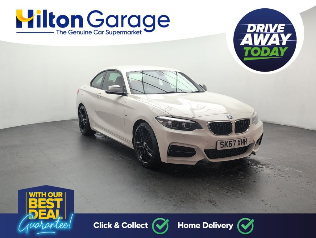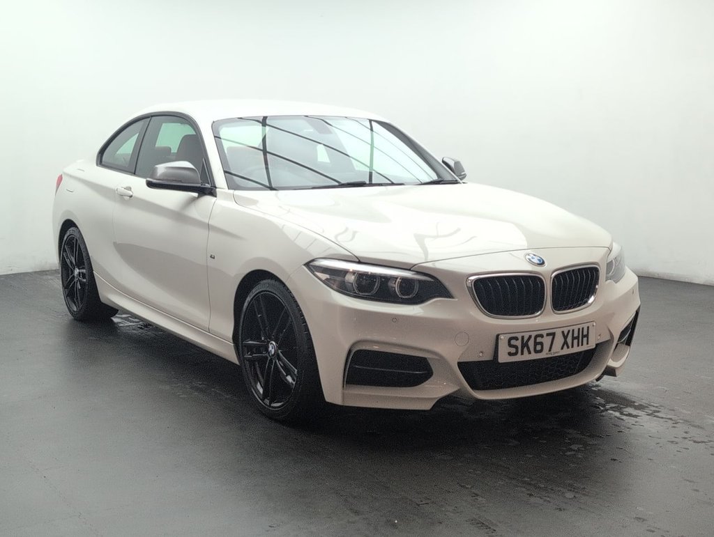 Great looking BMW 2 Series in White with Leather Seats - Bluetooth - 18" Alloy Wheels - DAB Radio - Air Conditioning - Privacy Glass Service History: 09/10/2019 at 15k, 28/09/2021 at 32k, 25/09/2023 at 47k, 08/09/25 at 66106 miles Thrilling and stylish, the BMW M240i features a 3.0L petrol engine with 340 PS and automatic transmission. Euro 6 compliant with start/stop, this 2-door coupé delivers dynamic M performance, sharp handling, and premium comfort for an exhilarating drive every time.