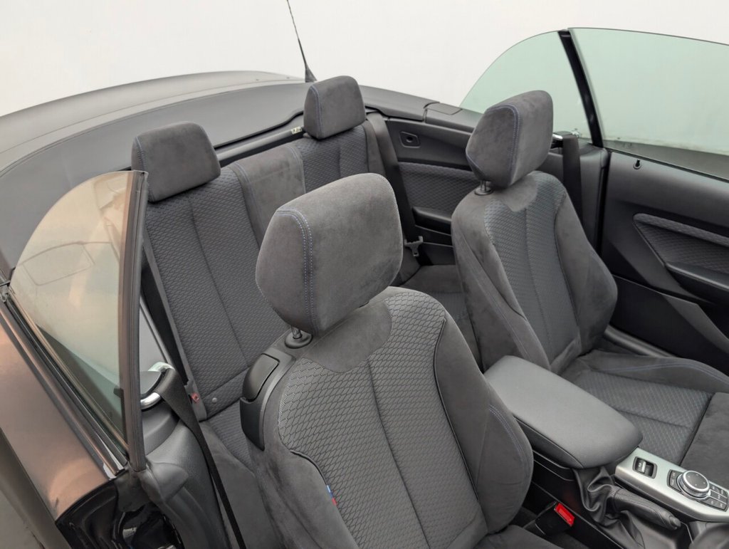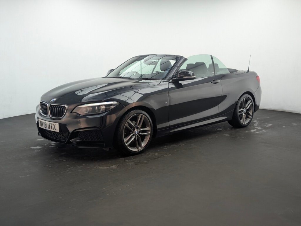 Stunning BMW 2 Series in Black with Cruise Control - Air Conditioning - 18" Alloy Wheels - Heated Seats - DAB Radio - SAT NAV Service History: 11/06/2020 at 7k, 21/06/2022 at 13k, 17/06/2024 at 19k Stylish and dynamic, the BMW 218i M Sport Convertible features a 1.5L petrol engine with 136 PS and automatic transmission. Euro 6 compliant with start/stop, it combines open-top driving pleasure, sharp handling, and premium M Sport design.