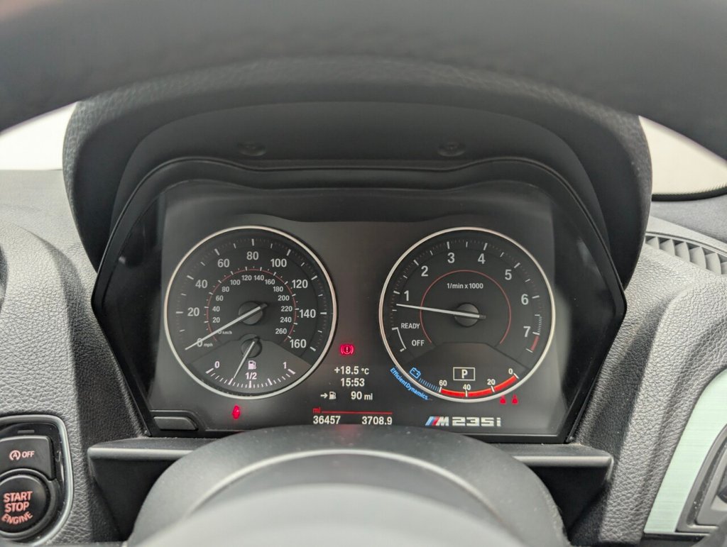 12V Power Socket - Centre Console, 12V Power Socket - Passenger Footwell, 18in Alloy Wheels - M Light Double Spoke - Ferric Grey - 436M, ABS - Anti Lock Braking System, Active Differential Brake - ADB Sport - Electronic Differential Lock in DSC-Off Mode, Adaptive Headlights, Air Conditioning - Automatic with Two-Zone Control, Airbags - Curtain Head - Front, Airbags - Driver - Front Passenger - Front and Side, Airblades - Ferric Grey, Alarm System Thatcham 1 with Remote Control, Ambient Lighting - Switchable, Armrest - Front and Rear Integrated into Door Trim, Armrest - Front with Sliding Adjustment, ASC - Automatic Stability Control, Automatically Dimming Rear View Mirror, Auxiliary Input, Battery Age Recognition Function, Battery Safety Cut Off, Bluetooth Hands Free with USB Audio Interface, BMW Apps Interface, BMW ConnectedDrive Online Services, BMW Emergency Call, BMW Mobility System, BMW Navigation, BMW Professional Radio - Single CD and MP3, BMW TeleServices, Brake Assist, Brake Pad Wear Indicator, Bumper - Rear with High Gloss Black Finisher, Bumper System Front and Rear - Replaceable Deformation Elements for Impacts Up to 9mph, Bumpers - Body Colour, CBC - Cornering Brake Control, Check Control Warning System for Monitoring of Lights and Door-Luggage Compartment Open Warning, Child Seat ISOFIX Attachment - Rear x2, Coat Hooks - Integrated into Rear of B Pillar, Concierge Service, Crash Sensor, Cruise Control with Brake Function, Cup Holders - Centre Console, DAB Digital Radio, Dakota Leather - Black with Black Interior, Daytime Driving Lights, DBC - Dynamic Brake Control, Door Handles - Body Colour, Door Mirrors - Body Coloured, Door Mirrors - Electric and Heated, Door Mirrors - Ferric Grey Housing, Door Mirrors - Integrated Indicators, Door Sill Finishers - M235i Designation, Drive Performance Control - ECO PRO - Comfort - Sport - Sport Plus, Driver Comfort Package, DSC - Dynamic Stability Control Plus, DTC - Dynamic Traction Control, Dynamic Brake Lights, ECO PRO Mode, Electric Windows - Front and Rear with Open-Close Fingertip Control - Anti-Trap Facility and Comfort Closing Function, Enhanced Bluetooth Telephone Preparation with USB Audio Interface and Voice Control, Exhaust Tailpipe - Dark Chrome - Dual - Round - Split, Extended Lighting, Extended Storage, Exterior Trim - High-Gloss Shadowline, First Aid Kit, Floor Mats - Velour, Follow Me Home Headlight Function, Front Air Inlet with High-Gloss Black Finisher, Full Black Panel Display, Gear Lever Knob - Leather, Gearshift Lever with M Designation - Short-Shift, Glovebox - Handle with Chrome Surround, Handbrake Lever - Leather, Head Restraints - Rear and Folding, Headlight Wash, Headlights - Beam Throw Control, Headlining - Anthracite, Heat Protection Glazing with Green Tint, Heated Windscreen Washer Jets, High Level Third Brake Light, High-Beam Assistant, Hill Start Assist, Indicator Lenses - Clear, Interior Comfort Package, Interior Lighting - Front and Rear Centre, Interior Trim - Aluminium Hexagon with Estoril Blue Finisher, Interior Trim - Brushed Aluminium with Black High-Gloss Trim Finisher, Kidney Grille - Chrome Extra-Wide Eight High-Gloss Black Vertical Slats, Lashing Eyes in Luggage Compartment at Sill x2, LED Rear Light Bars, Lights-On Warning by Audio Warning Signal When Ignition is Switched Off, Locking Wheel Bolts, Luggage Compartment - Light, Luggage Compartment Access via BMW Roundel, M Aerodynamic Bodystyling, M Aerodynamic Bodystyling with Airblades in Ferric Grey - No Front Fog Lights, M Logo Designation on Front Wings in Unique Dark Chrome, M Rear Spoiler, M Sport Braking System, Manual Deactivation of Front Passenger Airbag, Media Package - BMW Professional, Mineral Grey, Model Designation, Navigation System - BMW Professional Multimedia, OBC - On-Board Computer, Oil Sensor For Level and Grade - Warning by Check Control System, Optimum Shift Indicator, PDC - Park Distance Control - Front and Rear, PDC - Park Distance Control - Rear, Personal Profile - Extended, Power Steering - Electric, Rain Sensor with Automatic Headlight Activation, Rear Fog Light, Rear Window Aerial, Remote Control with Integrated Key with Insert in Blue, Remote Services, Roof Mouldings - Body Colour, Seat Belt Security Check for Driver and Front Passenger, Seat Heating for Driver and Front Passenger, Seats - 60-40 Split Folding Rear, Seats - Front - Manual Height Adjustment, Shark Fin Aerial, Side Impact Protection, Speed Limit Function, Sport Automatic Transmission, Sport Instrument Cluster - Differentiated Dial Design Featuring Finer Chrono-Scaling, Sport Seats - Front, Start-Stop Button with Comfort Go Keyless Engine Start and Auto Start-Stop Deactivation Button, Steering Column with Manual Reach and Rake Adjustment, Steering Wheel - M Sport Leather Multifunction Finished in Nappa Leather, Steering Wheel - Multifunction Controls, Storage Compartment - Rear Centre Console and in Door Trim - Front, Sun Protection Glazing, Sun Protection Package, Sun Visors with Vanity Mirrors and Ticket Holder, Suspension - M Sport with Individual M235i Setup, Three-Point Seat Belts - All Seats, TPMS - Tyre Pressure Monitoring System, Tyres - Reduced Rolling Resistance, Variable Sport Steering, Variable Sport Steering with M235i-Specific Characteristics, Visibility Package, Visible VIN, Warning Triangle, Welcome Lighting, Windscreen with Grey Shade Band, Xenon Headlight PackageThis car includes £6,532 worth of Factory Fitted Extras