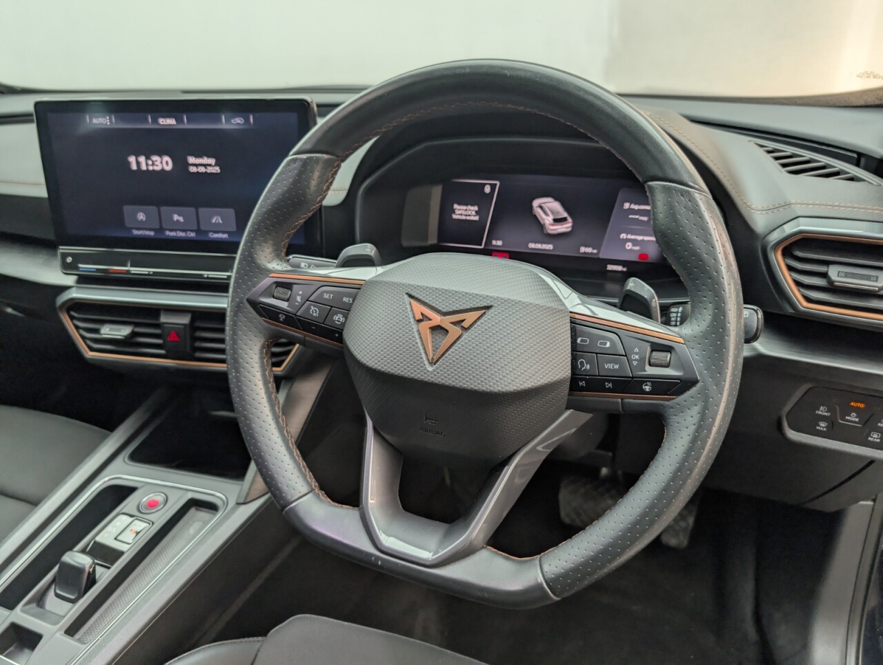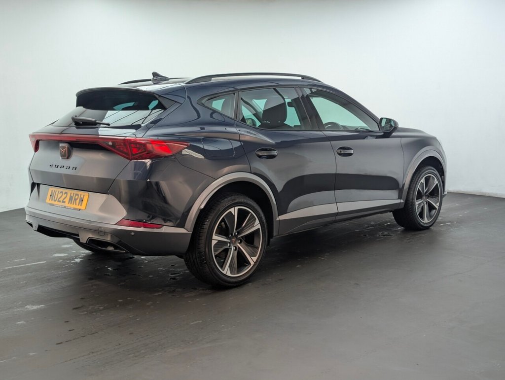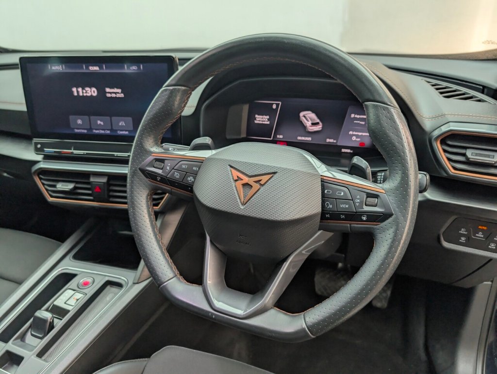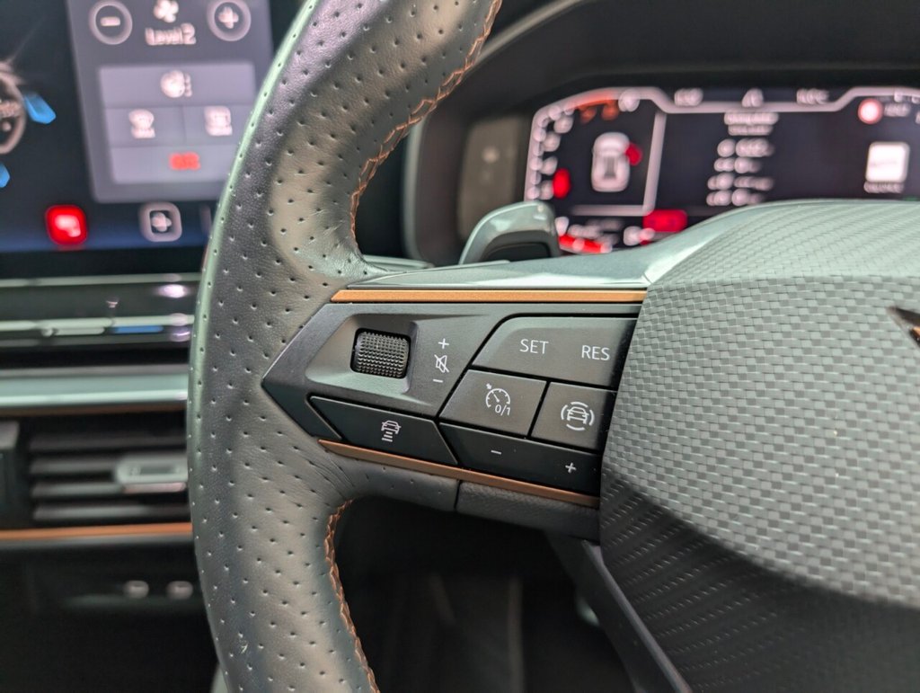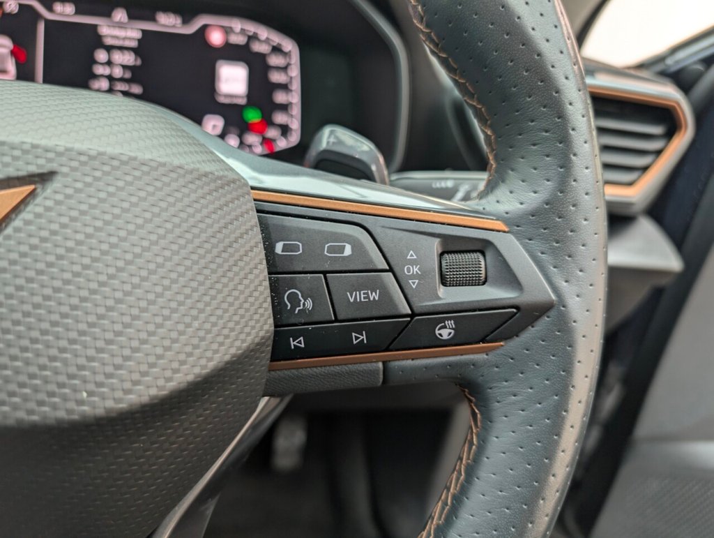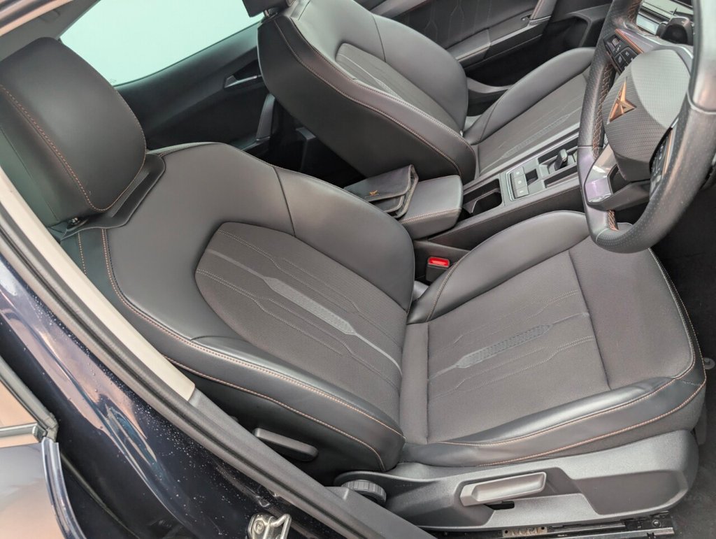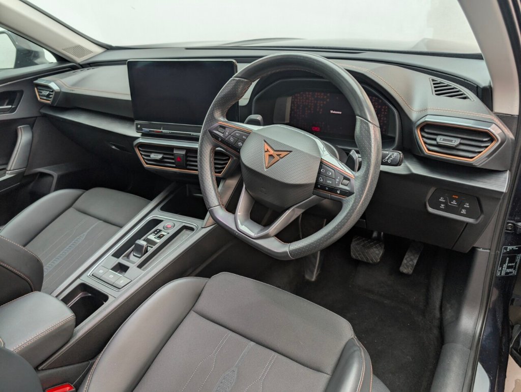12V Socket, 18in Alloy Wheels - Performance Machined Sport - Black and Silver, 60-40 Rear Seats with Central Armrest and Mechanical Seat Release, ABS - Anti-Lock Braking System, Airbag on Driver and Front Passenger Side with Front Passenger Airbag Deactivation, Anti-Theft Alarm, Auto Dimming Rear View Mirror, Black Sports Seats with Copper Stitching, Breakdown Kit, Copper and Aluminium Interior Detailing, CUPRA Connect - Safety - Service - Remote and Online, Daytime Running Lights with Automatic Headlight Control and Coming-Leaving Home Lights, Digital Cockpit and Configurable Dashboard, Door Mirrors Electrically Adjustable - Folding and Heated, Driver Alert System, Driving Profile Selection, Dynamic Headlight Range Control, Electric Window - Front, Electronic Locking Differential with Dynamic Traction Support, Electronic Parking Brake, Forward Collision Warning with Automatic Braking, Front and Rear Head Restraints, Front Centre Armrest, Front Fog Lights with Cornering Function, Front Side Curtain Airbag, Gloss Black Roof Rails and Window Surrounds, Headlining - Grey, Illuminated Interior Front Door Sills, Illuminated Sunvisor with Mirror, Interior Ambient Lighting, ISOFIX, Kessy - Keyless Entry and Start, Lane Assist, Leather Multi-function Steering Wheel - Heated with Gear Shift Paddles, LED Headlight, LED Taillights with Dynamic Indicator, Locking Wheel Bolts, Manually Adjustable Height and Lumbar Support for Front Seats, Navigation System, Power Steering, Predictive Adaptive Cruise Control with Speed Limiter, Rain Sensing Wipers, Reading Lights - 2x Front - 2x Rear, Rear Diffuser with Black Simulated Exhaust Pipes, Rear Parking Sensors, Safety and Driving Pack M, Seat Belt Reminder, Three Zone Climate Control with Control Panel in the Rear, Tinted Rear Windows, Tyre Pressure Monitoring System, USB Type C x4 - x2 Front and x2 Rear, Variable Luggage Compartment Floor, Welcome Lights, Wireless Phone ChargerThis car includes £0 worth of Factory Fitted Extras