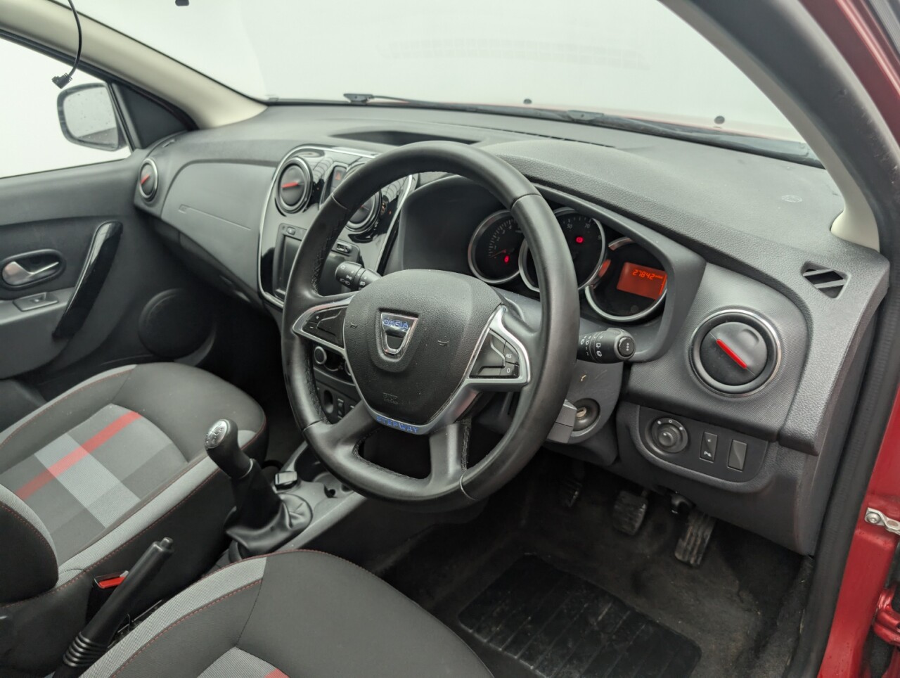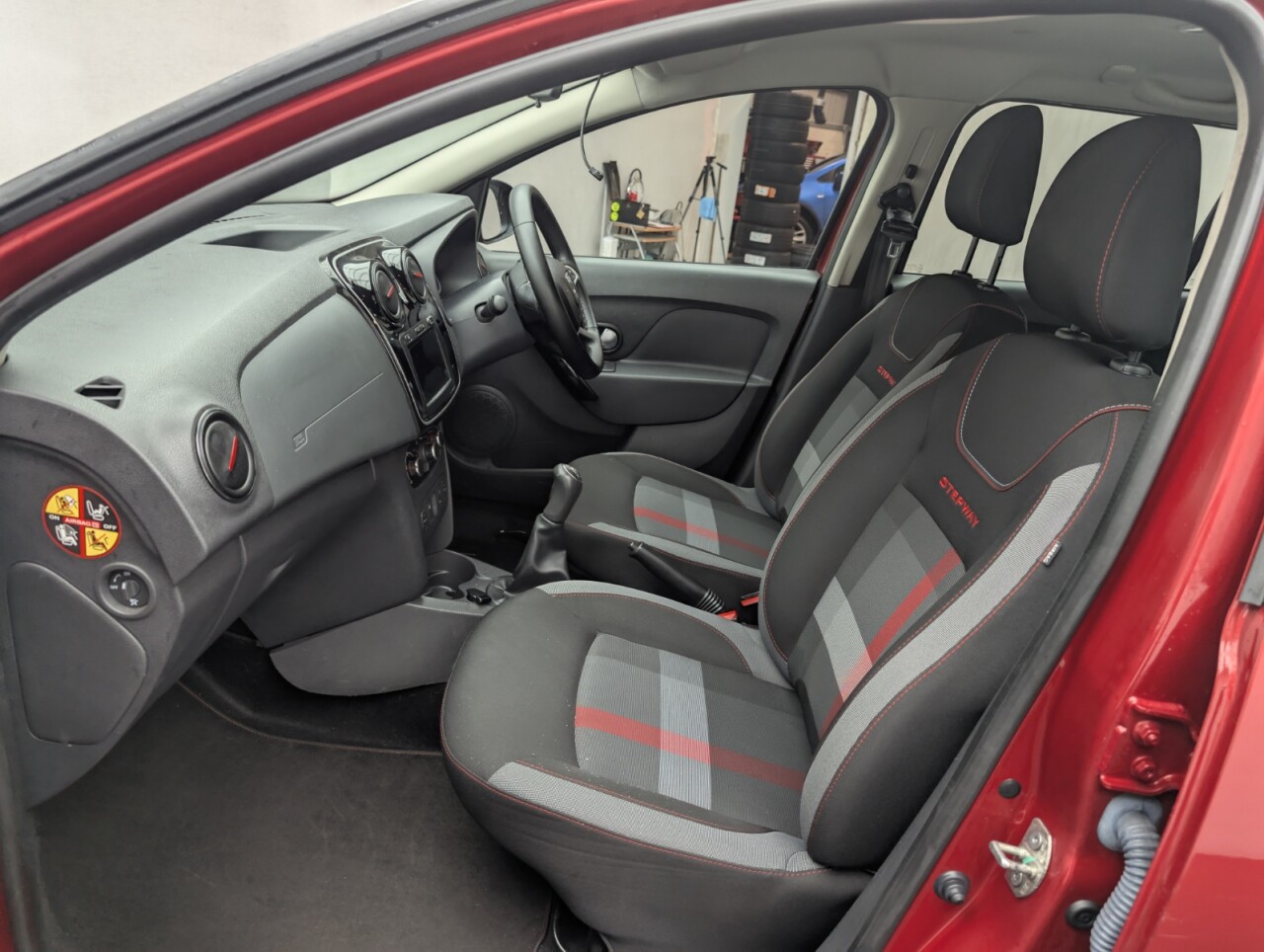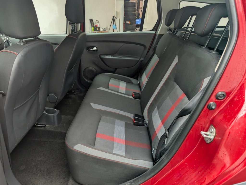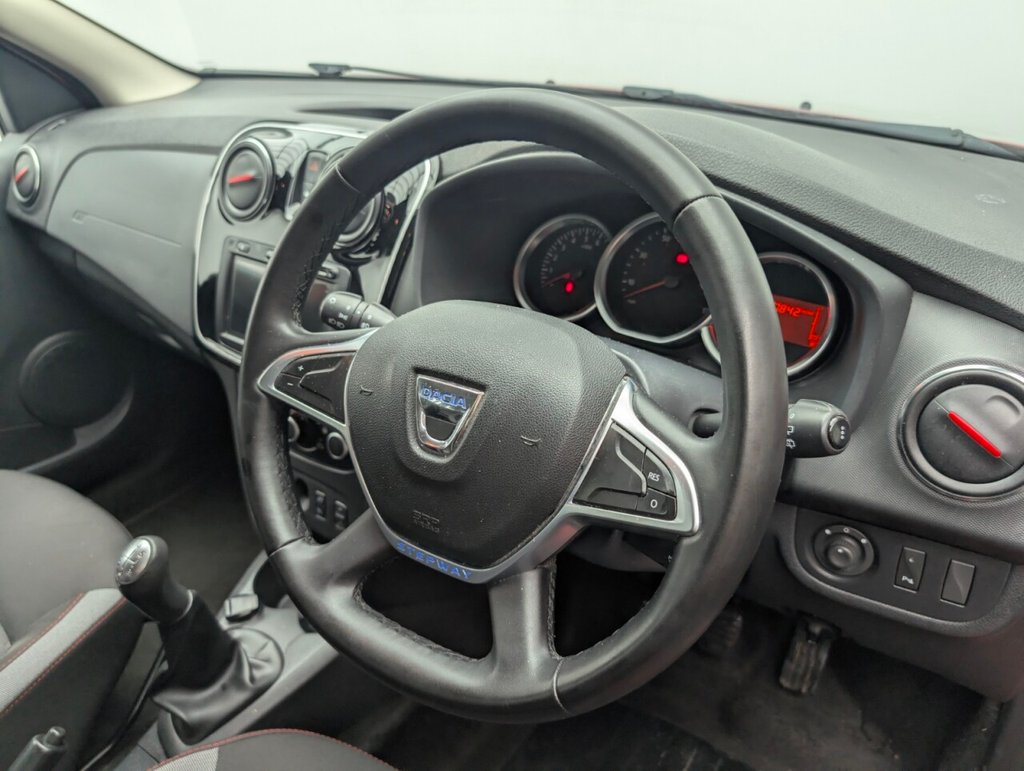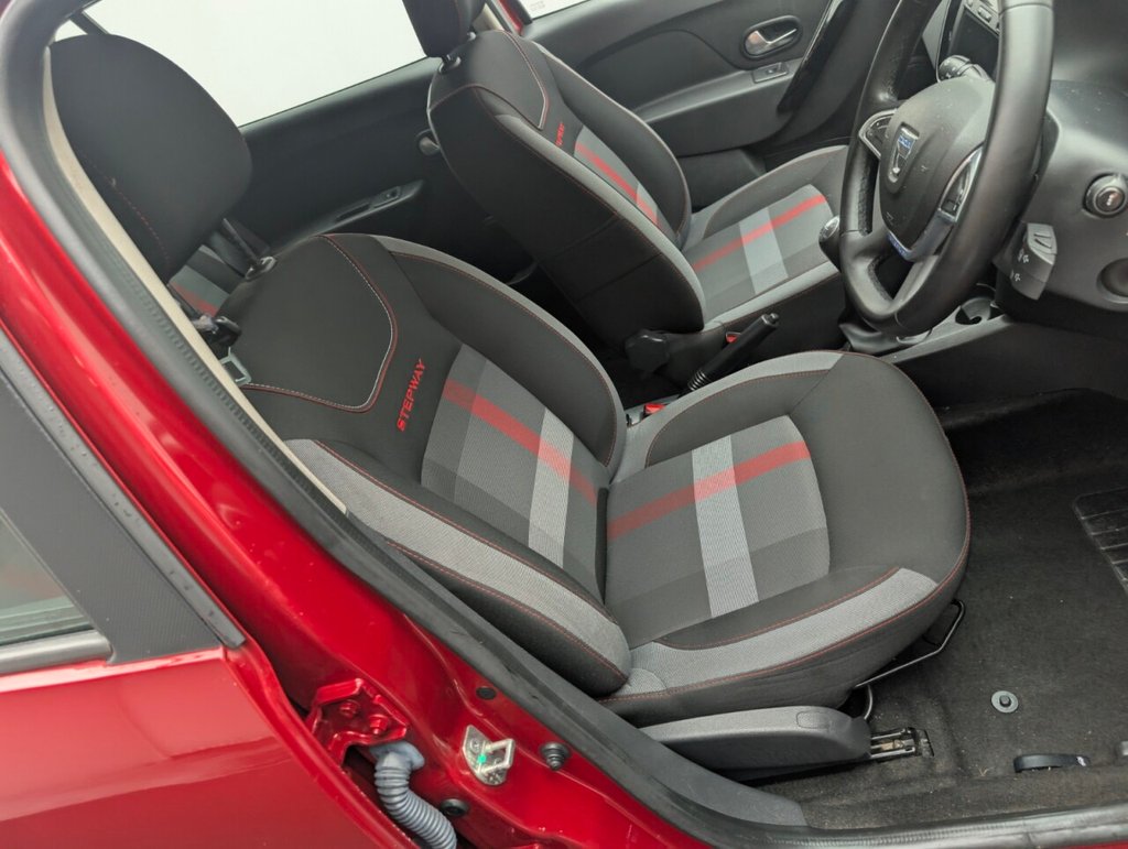 12V Power Socket by Gear Lever, 12V Socket for Rear Passengers, 16in Steel Wheels - Flex Expression, 16in Steel Wheels - Stepway Design, 3-Point Rear Seatbelts x3, 3-Speed Front Windscreen Wipers, 4-speed Heating and Ventilation, 7-Function On-Board Computer, Air Vents - Satin Chrome, Airbags - Driver, Airbags - Front Passenger with Deactivation Function, Airbags - Front Side, Anti-intruder Automatic Door-locking System, Anti-lock Braking System - ABS and Emergency Brake Assist - EBA, AUX Input, Bluetooth Connectivity, Boot Light, Bumpers - Front and Rear Body Coloured, Central Locking - Remote, Centre Console Surround - Satin Chrome, Child Locks in Rear Doors, Chrome Front Grille, Chrome Heating Control Inserts, Cruise Control and Speed Limiter, DAB-FM-AM Radio, Door Handles - Black, Door Handles - Interior Front - Satin Chrome, Door Handles - Interior Rear - Satin Chrome, Door Mirrors - Heated and Electrically Adjustable, Door Mirrors - Metal Grey, Door Mirrors with Red Striping, Door Open - Visual Warning, Electric Windows - Front, Electric Windows - Rear, Emergency Spare Wheel, ESC - Electronic Stability Control with ASR - Traction Control and Hill Start Assist - HSA, Fog Light Surrounds in Chrome, Front Courtesy Light, Front Fog Lights, Front Passenger Grab Handle, Fusion Red, Gear Knob - Leather, Gear Shift Indicator, Headlights - Double Optic with Chrome Surrounds, Headlights Left On - Audible and Visual Warning, Headrests - Rear Height Adjustable x3, Heated Rear Window, Height-Adjustable Drivers Seat, Height-Adjustable Front Headrests, Height-Adjustable Front Seatbelts, Height-Adjustable Steering Wheel, High Level Third Brake Light, Instrument Dial Surrounds - Satin Chrome, ISOFIX Points for Child Seats in Both Outer Rear Seats, LED Automatic Daytime Running Lights, Manual Air-conditioning, Map Pockets on Front Seatbacks, MediaNav 7in Touchscreen Multimedia System, Power Assisted Steering, Raised Ride Height, Rear Parking Camera, Rear Parking Sensors, Rear Passenger Grab Handles, Rear Washer-Wipe, Rev Counter, Roof Bars - Metal Grey, Seatbelt not Fastened - Visual and Audible Warning, Seats - 60-40 Split Folding Rear, Side Sills - Black, Skid Plates - Front and Rear - Satin Chrome, Soft Feel Steering Wheel, Stepway Logo on Front Door Panel, Sunvisor with Vanity Mirror - Passenger, Techroad Badging, Techroad Design Floor Mats with Red Finishing, Techroad Red Trim, Thatcham Approved Engine Immobiliser, Tinted Windows, Tyre Inflation Kit, Tyre Pressure Monitor, Tyre Pressure Warning Light, USB Connection for MP3 Players, Wheelarch Extensions - BlackThis car includes £175 worth of Factory Fitted Extras