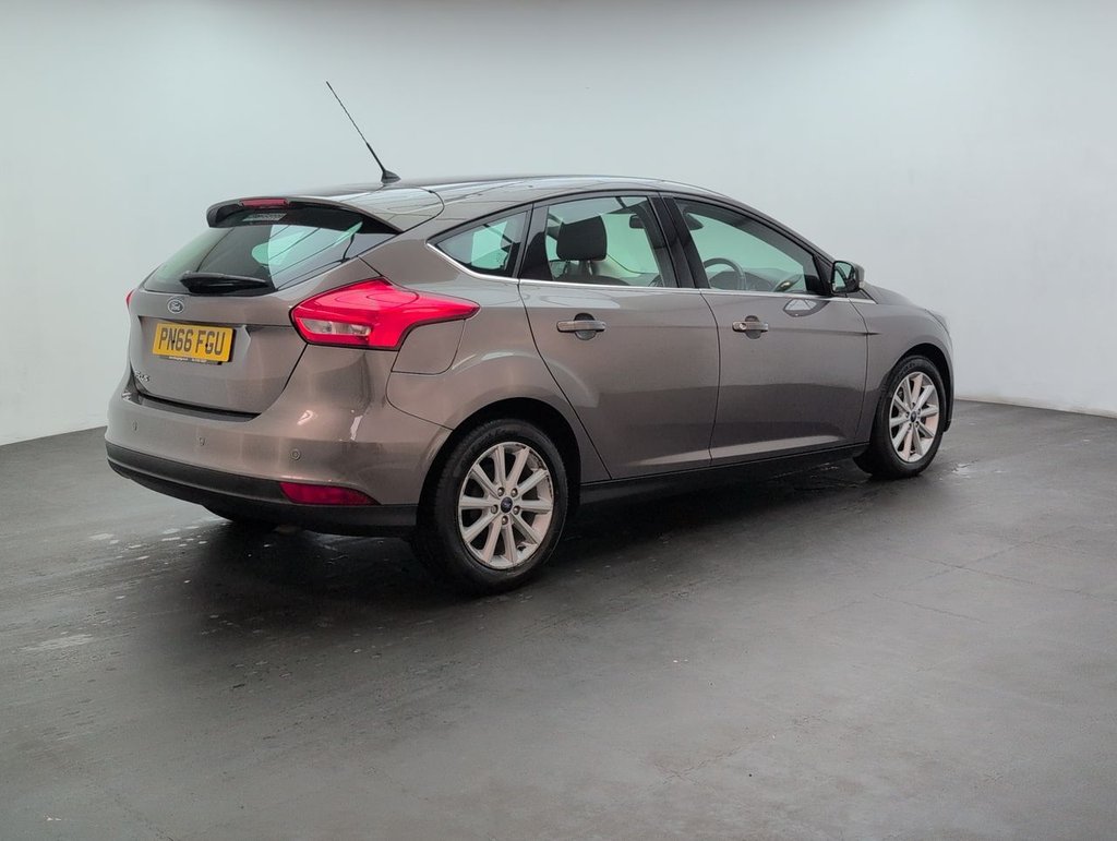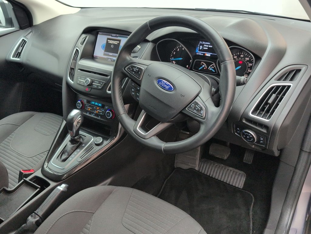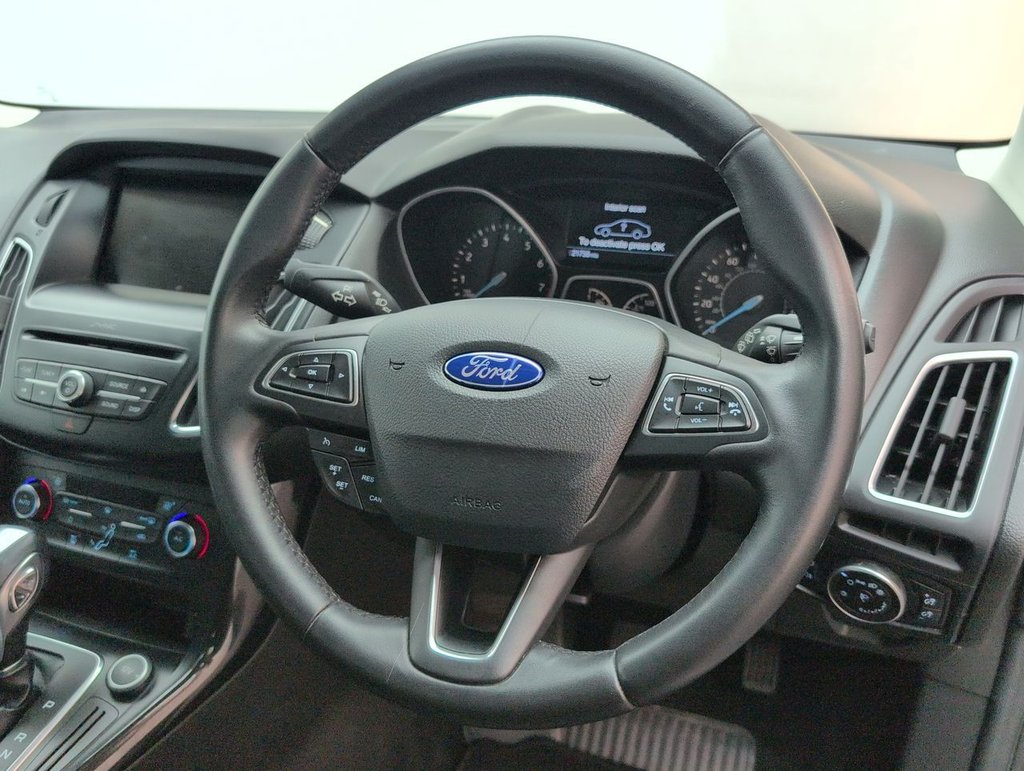 16" alloys, Air conditioning, Bluetooth, Cruise control and Hill start assist. The Ford Focus Titanium is a versatile and well-equipped hatchback that combines modern design, advanced technology, and smooth, efficient performance. Powered by a 1.6-litre petrol engine (125PS) with a Powershift automatic gearbox, it delivers a relaxed and responsive drive, making it ideal for both city commutes and longer journeys.