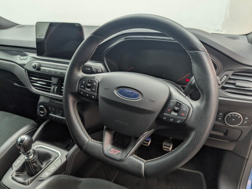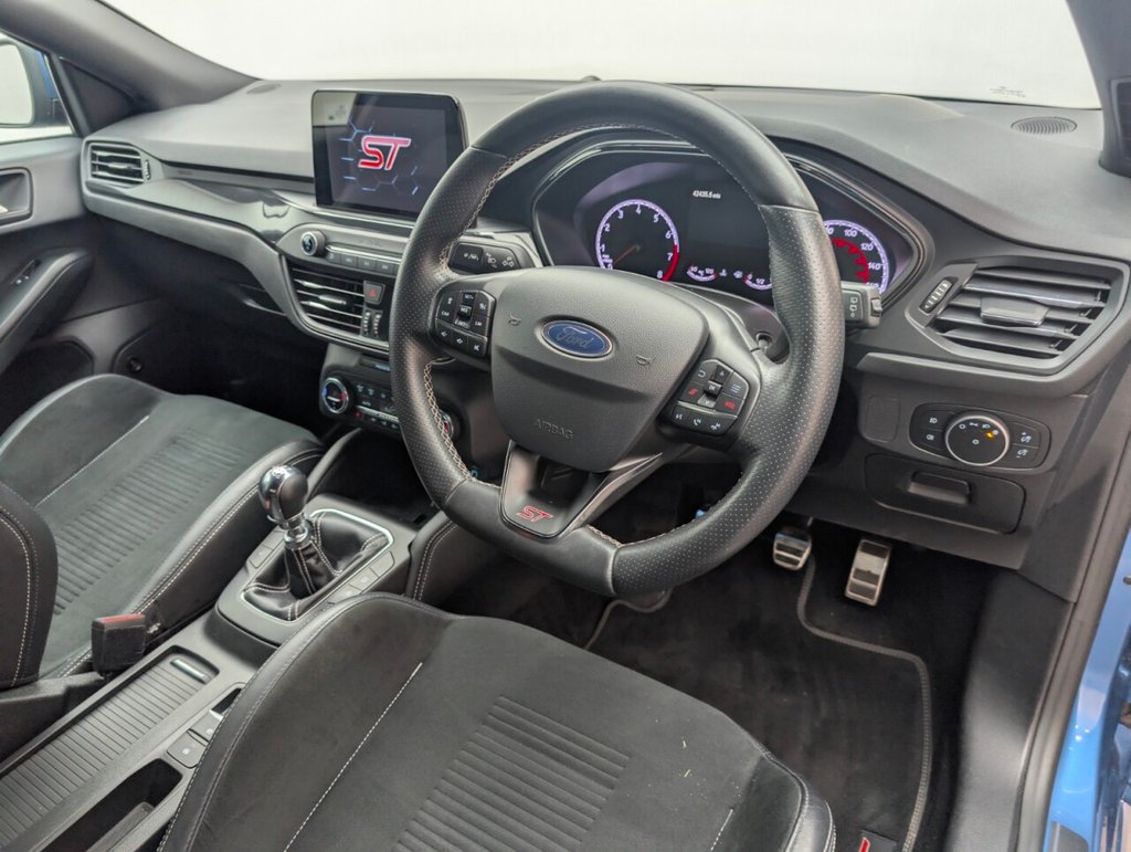 Great looking Ford Focus in Blue with 19" Alloy Wheels - Cruise Control - Privacy Glass - SAT NAV - DAB Radio Service History: 13/07/2020 at 9k, 13/07/2021 at 16k, 25/07/2022 at 23k, 21/07/2023 at 31k, 15/01/2024 at 34k, 23/04/2025 The Ford Focus 2.3T EcoBoost ST delivers 280 PS of pure driving excitement with a slick manual gearbox and sharp handling. Euro 6 compliant, this hot hatch combines aggressive styling, sporty performance, and everyday practicality—perfect for enthusiasts who want power, precision, and fun behind the wheel.