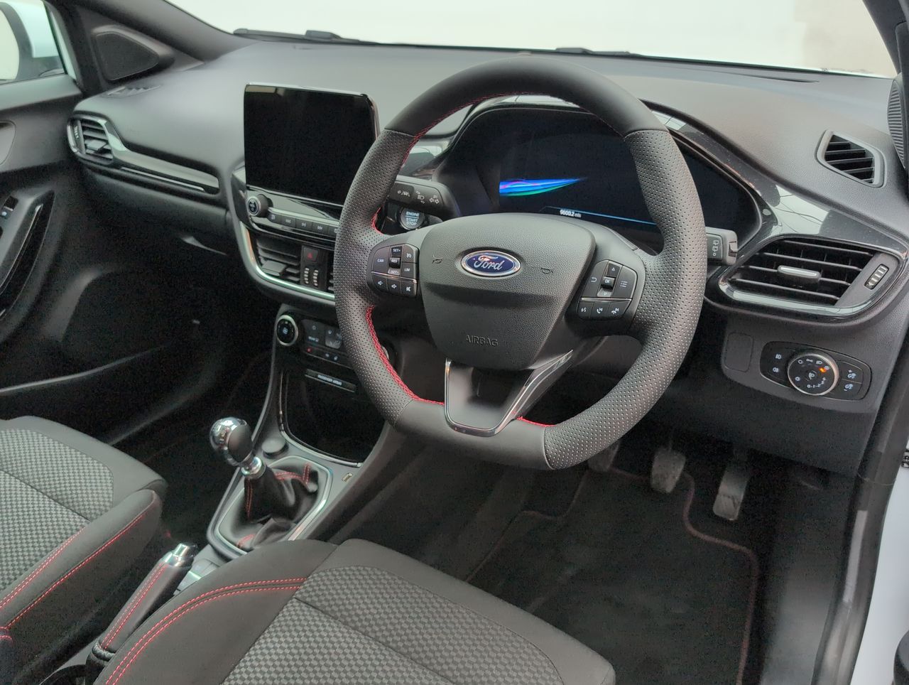 - ST-Line Flat-Bottomed Leather Steering Wheel with Unique Red Stitching