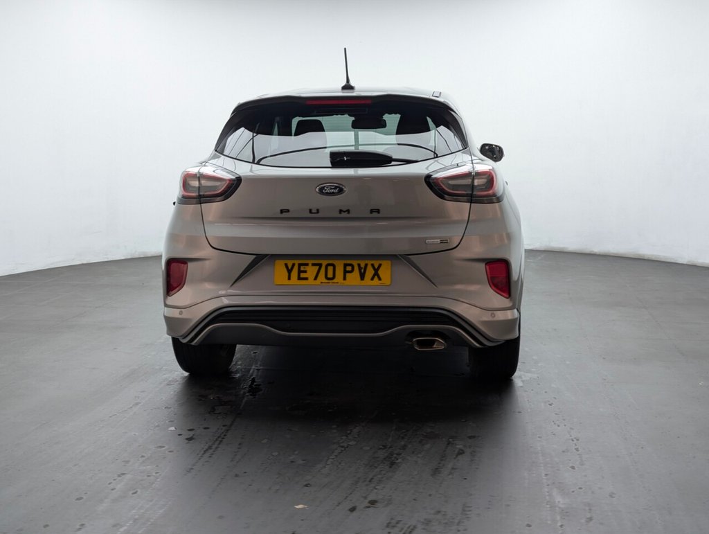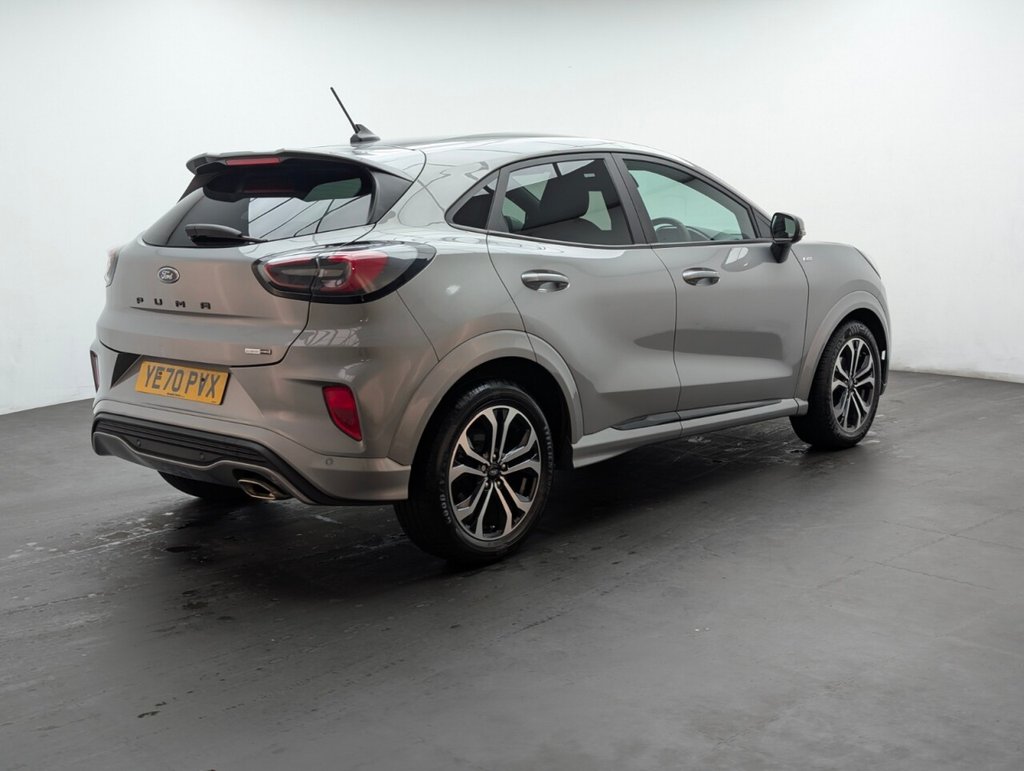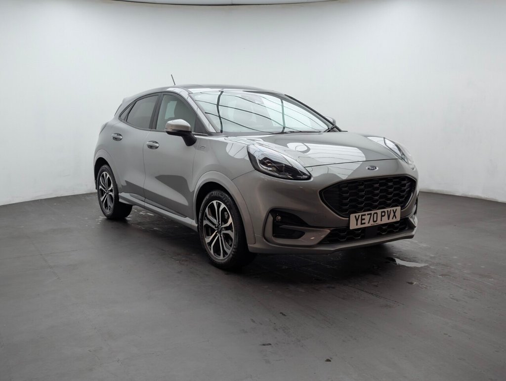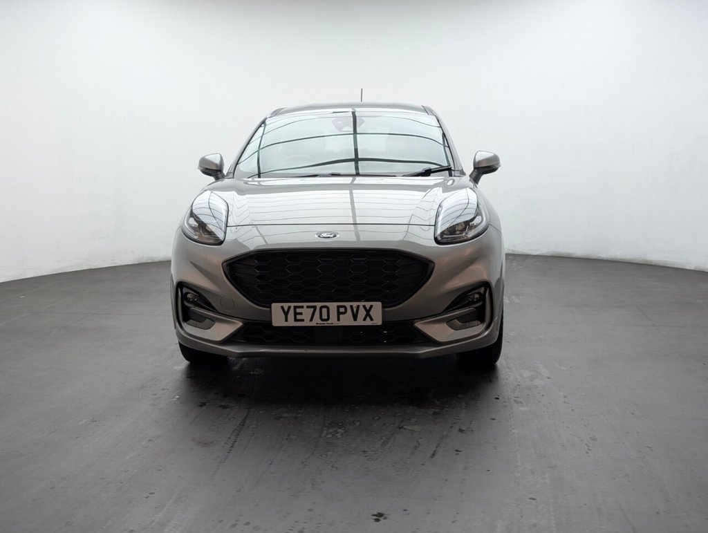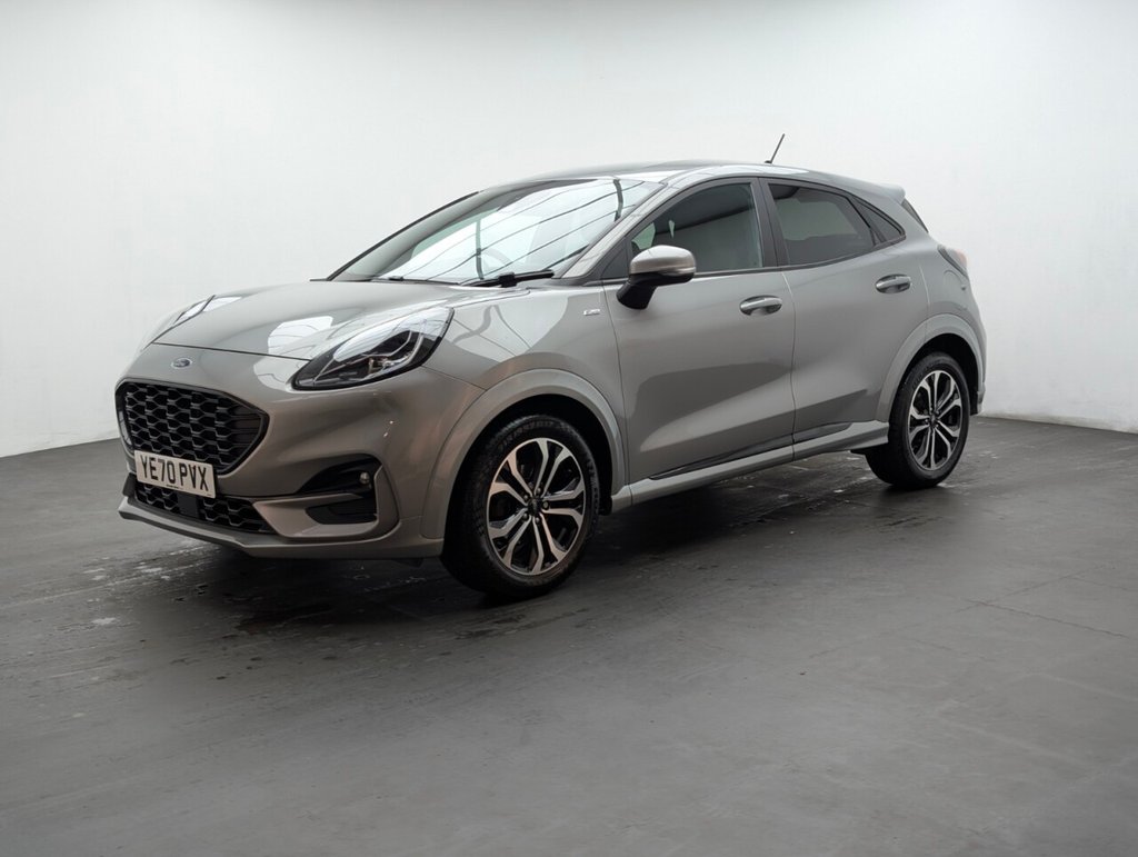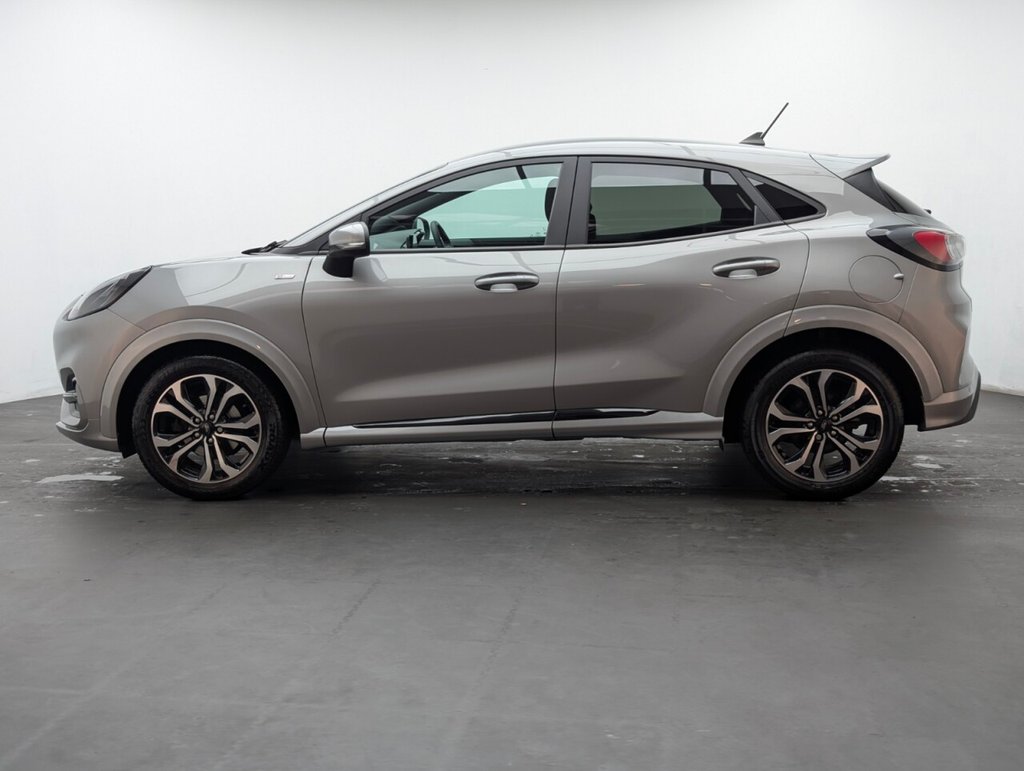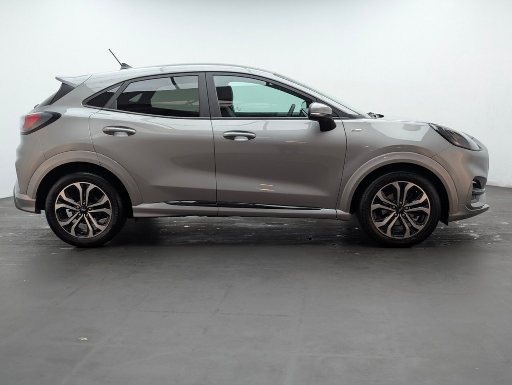 Great looking Ford Puma in Silver with Parking Sensors - SAT NAV - Cruise Control - Automatic Dimming Rear View Mirror - ST-Lined Flat-Bottomed Leather Steering Wheel - Leather Handbrake and Aluminium Gear Knob Last serviced 28/08/2024 at 33k Sporty and efficient, this Ford Puma 1.0T EcoBoost MHEV ST-Line delivers 125PS with mild-hybrid technology and a slick manual gearbox. Euro 6 petrol performance, sharp styling, and smart features make it a fun, practical SUV ideal for modern driving.