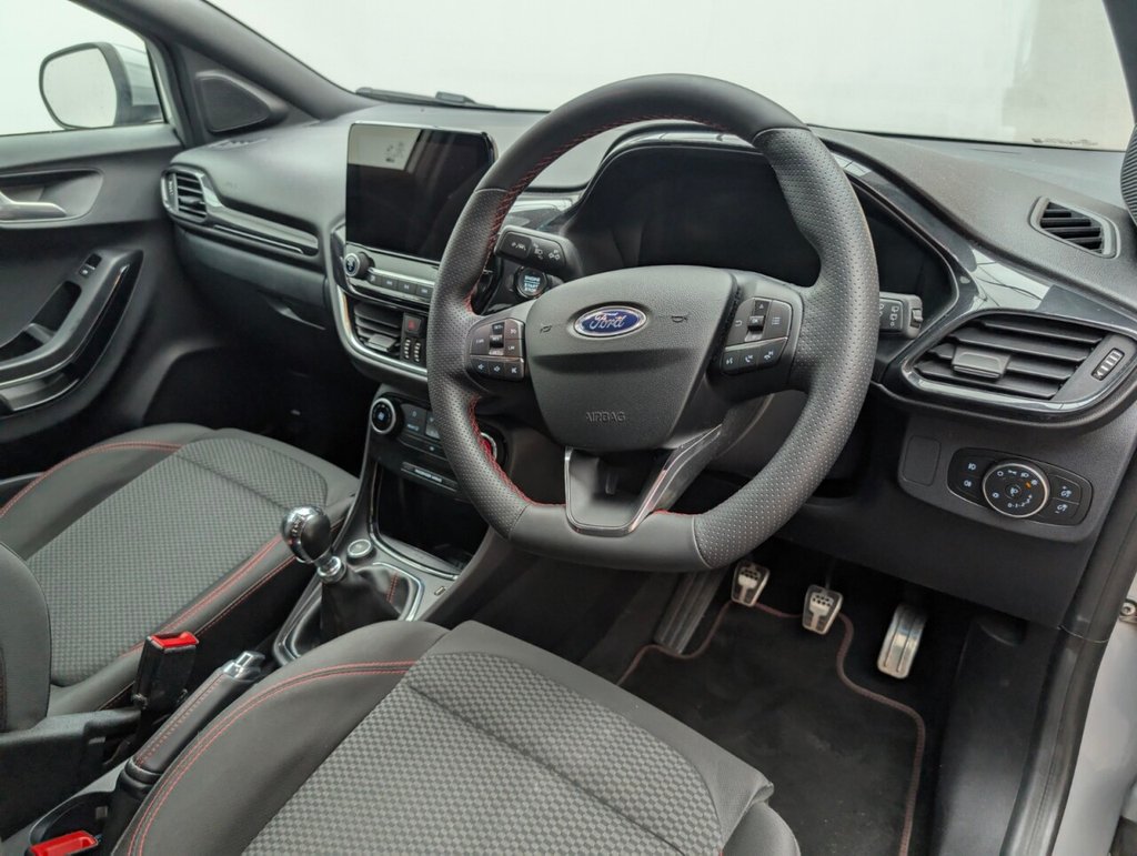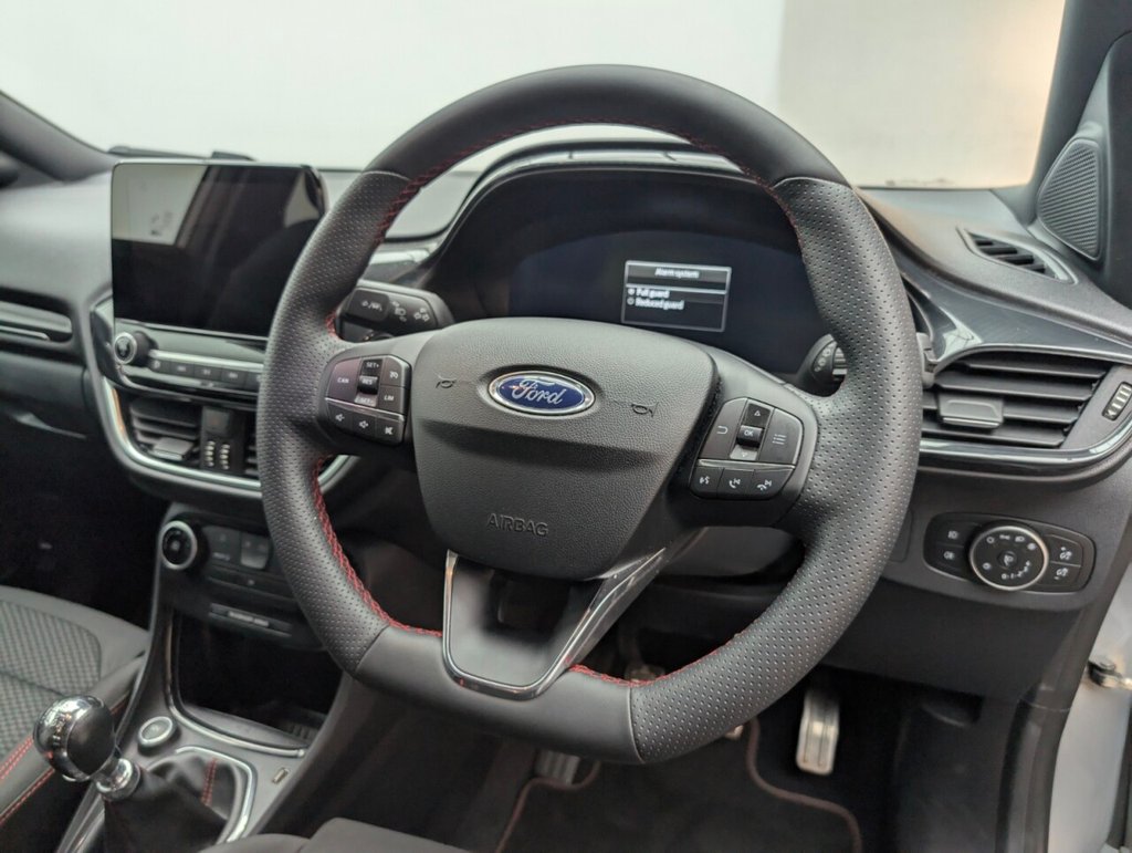17in Alloy Wheels - 5x2 Spoke - Black Machined Finish, ABS - Anti-lock Braking System, Acoustic Laminated Windscreen, Active Grille Shutter, Automatic Dimming Rear View Mirror, Automatic Headlights with Rain-Sensing Wipers and Auto High Beam, Centre Console with Armrest - Stowage, Courtesy Lights - Ambient LED Courtesy Lighting - Single Colour, Cruise Control - Lane Keeping Aid and Lane Departure Warning, Driver Seat Lumbar and Height Adjustment, Electric Windows - Front and Rear, Electronic Stability Control - ESC with Traction Control and Emergency Brake Assist - EBA, Emergency Brake Warning - Automatic Hazard Warning Lights, First Aid Kit Strap, Floor Mats - Front and Rear, Ford Easy Fuel System, Ford MegaBox Extended Bootspace, Ford Power Starter Button, Ford SYNC 3 Navigation, Front Bumper - Unique ST-Line Sport Design - Body Colour, Front Door Threshold Plates - ST-Line, Front Fog Lights with Cornering lights and LED Rear Lamps, Front Seats - Sports Style, Full Digital 12.3in Instrument Cluster, Gearshift Knob - Soft Feel with Red Stitching, Headliner - Deluxe, Instrument Panel - High Level, Large Rear Spoiler - Body Colour with Centre High Mounted Stop Light, Locking Wheel Nuts, Lower Bodyside Moulding - Body Colour, Manual Air Conditioning, Post Collision Braking, Power Steering, Power-Foldable Heated Door Mirrors with Puddle Lamps, Pre-Collision Assist with Autonomous Emergency Braking and Pedestrian-Cyclist Detection, Projector Headlamps with LED Daytime Running Lights, Puma Badge, Quickclear Heated Windscreen, Rear Bumper Body Colour - Diffuser, Rear Parking Sensors, Rear Seats - 2-Way Head Restraint Up-Down, Rear Seats - Second Row 60-40 Folding Seats, Remote Central-Double Locking, Restrain Device Pack, Selectable Driving Modes - Normal - Eco - Sport - Slippery and Trail, Speed Limiter, Sports Suspension, ST-Line Badge, ST-Line Body Styling Kit, ST-Lined Flat-Bottomed Leather Steering Wheel - Leather Handbrake and Aluminium Gear Knob, Stainless Steel Pedal Covers with Rubber Inserts, Thatcham Alarm, Trip-Fuel Computer, Tyre Inflation Kit, Tyre Pressure Monitoring System - TPMS, Wireless ChargingThis car includes £0 worth of Factory Fitted Extras