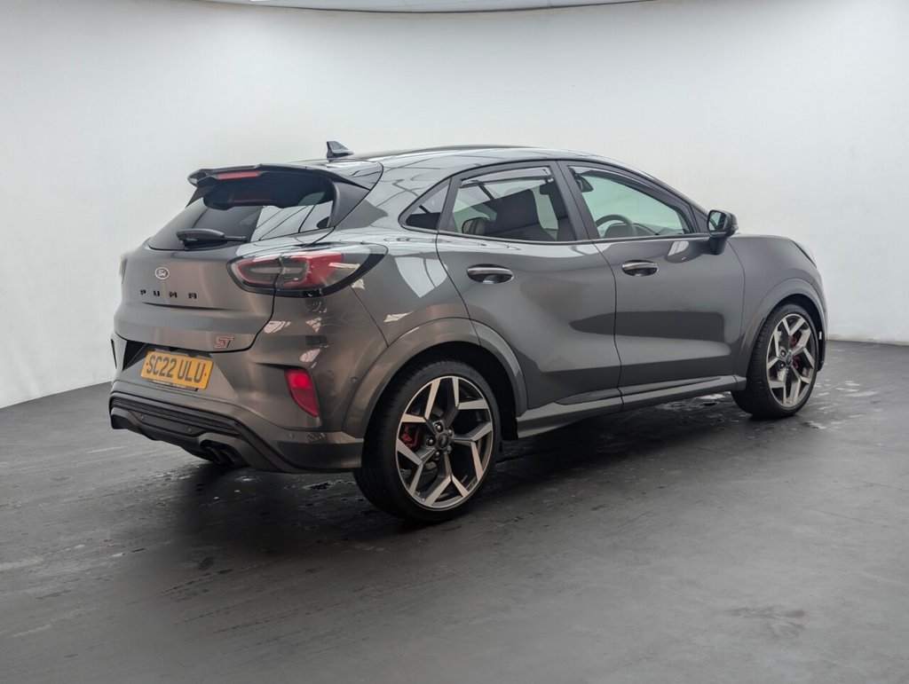 19in Alloy Wheels - 5-Spoke - Magnetite Machined Finish, 6-Way Manual Driver Seat with Lumbar Adjustment, 6-Way Manual Passenger Seat with Lumbar Adjustment, ABS - Anti-lock Braking System, Acoustic Laminated Windscreen, Active Grille Shutter, Alloy Sports Pedals, Automatic Dimming Rear View Mirror, Automatic Headlights with Rain-Sensing Wipers and Auto High Beam, B&O Premium Audio System and Ford SYNC 3 Navigation, Black Contrast Roof, Carbon-Look Interior Deco Spears, Centre Console - Premium with Openable Stowage Area with USB Connectivity - 2 Cupholders and 12v Power Point, Chrome Dual Exhaust Pipe, Courtesy Lights - Ambient LED Courtesy Lighting - Single Colour, Cruise Control with Intelligent Speed Assist, Driver Assistance Pack, Electric Windows - Front and Rear, Electronic Air Temperature Control - EATC, Emergency Brake Warning - Automatic Hazard Warning Lights, Engine Sound Enhancer, ESC - Electronic Stability Control and Hill Start Assist, First Aid Kit Strap, Fixed LED Signature Headlamps, Ford KeyFree System, Ford MegaBox Extended Bootspace, Ford Power Starter Button, Front Bumper - Unique ST Design - Body Colour, Front Fog Lights with Cornering lights and LED Rear Lamps, Front Parking Sensors, Full Digital 12.3in Instrument Cluster, Gearshift Knob - Soft Feel with Metal Grey Stitching, Handbrake - Black Sensico Trimmed with Stitching, Handsfree Power Tailgate, Headliner - Deluxe, Instrument Panel - High Level, Intelligent Speed Assistance, Lane Keeping Aid with Lane Departure Warning, Large Rear Spoiler - Body Colour with Centre High Mounted Stop Light, Locking Wheel Nuts, Lower Bodyside Moulding - Painted Accents - Painted Door Spears in High Gloss Black, Magnetic, Partial Sensico - Ebony with Metal Grey Stitching, Post Collision Braking, Power Steering, Power-Foldable Heated Door Mirrors with Puddle Lamps and Puma Logo Projection, Pre-Collision Assist with Autonomous Emergency Braking and Pedestrian-Cyclist Detection, Privacy Glass, Puma Badge, Quickclear Heated Windscreen, Rear Bumper - ST Unique, Rear Parking Sensors, Rear Seats - 2-Way Head Restraint Up-Down, Rear Seats - Second Row 60-40 Folding Seats, Red Brake Calipers, Remote Central-Double Locking, Restrain Device Pack, Selectable Driver Modes - Normal - Eco - Sport - Track, Soft-feel Gearshift Boot with Silver Stitching, Speed Limiter, ST Badge, ST Flat Bottom Steering Wheel with Metal Grey Stitching, ST Front and Rear Mats, ST Logo Projection - From Door Mirrors, ST Performance Pack, ST Suspension, Tailgate - Manual, Thatcham Alarm, Traction Control and Emergency Braking Assistance, Trip-Fuel Computer, Tyre Inflation Kit, Tyre Pressure Monitoring System - TPMS, Unique ST Elements to Front and Rear Body Styling Kit, Unique ST Gear Shift Knob, Unique ST Scuff Plates, Winter Pack, Wireless Charging Pad with Electronic Air Temperature Control EATCThis car includes £2,425 worth of Factory Fitted Extras