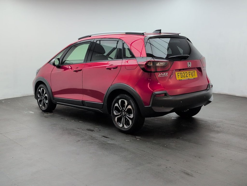 16" alloys, Cruise control, Air conditioning, Lane keep assist and Rear view camera. The Honda Jazz 1.5?h i-MMD Crosstar EX combines hybrid efficiency, versatile practicality, and rugged styling in a compact 5-door hatchback. Powered by a 109 PS 1.5-litre petrol hybrid engine with eCVT automatic transmission and Euro 6 compliance, it delivers smooth, economical driving with reduced emissions.