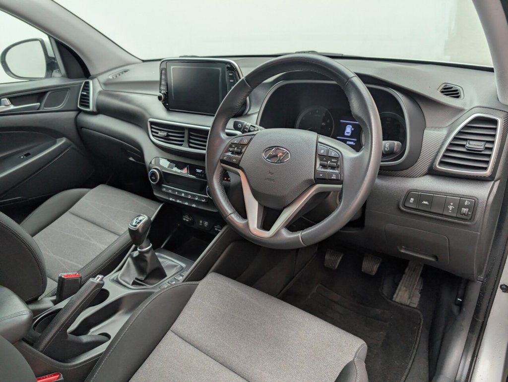 Great looking Hyundai Tucson in Silver with Cruise Control - 17" Alloy Wheels - Climate Control - Bluetooth - Privacy Glass Service History: 02/11/2019 at 10k, 15/10/2020 at 15k, 20/09/2021 at 17k, 07/09/2022 at 18k, 01/08/25 at 23185 miles. The Hyundai Tucson 1.6 GDi SE Nav delivers 132PS of petrol power with Euro 6 efficiency and a smooth manual gearbox. This spacious 5-door SUV features satellite navigation, rear parking camera, and a premium interior—perfect for families seeking comfort, practicality, and reliable performance on every journey.