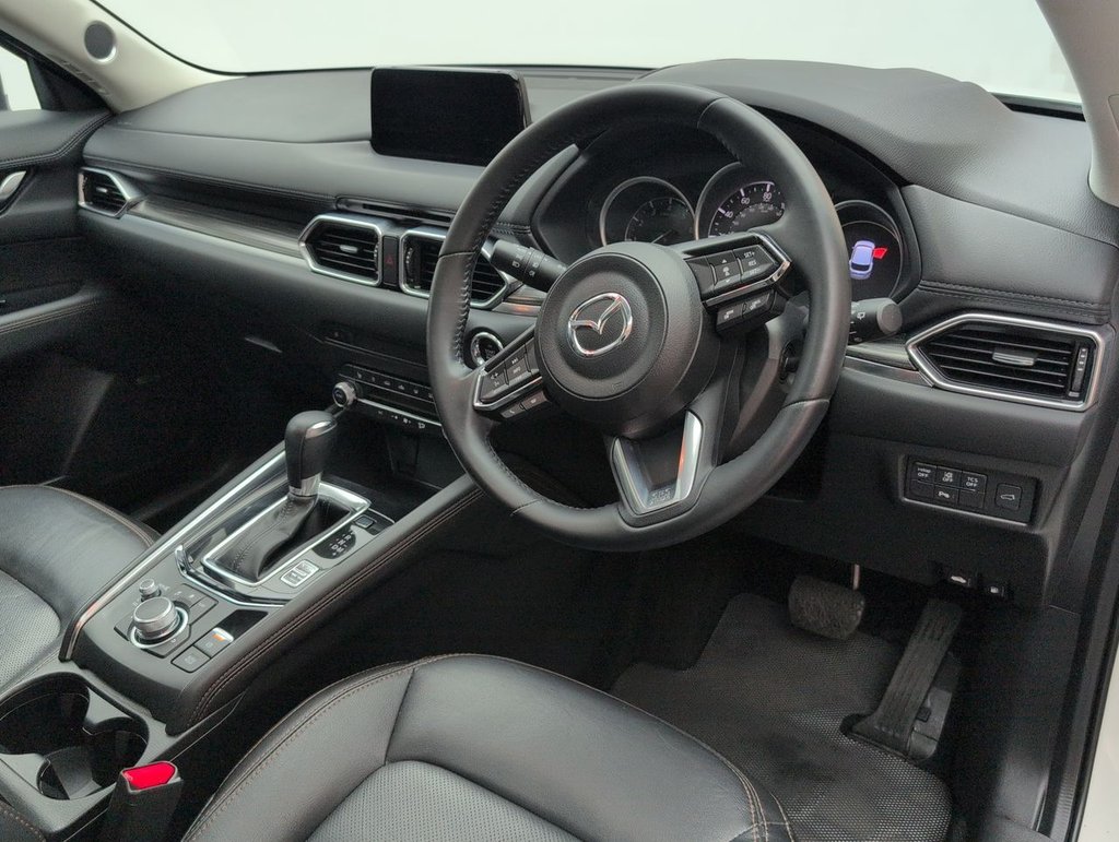 19in Alloy Wheels - Silver, 7in Colour Touch Screen Display, ABS - Anti Lock Braking System, Advanced Smart City Brake Support, AM-FM-DAB Radio - Single CD - MP3 Featuring 10 Bose Speakers, Apple CarPlay and Android Auto, Auto Dimming Rear View Mirror, Auxiliary - AUX - and Two USB Input, Blind Spot Monitoring with Rear Cross Traffic Alert, Bumper - Front Body Coloured with Black Lower Mouldings, Bumper - Rear Body Coloured with Black Lower Moulding, Colour Active Driving Display - Colour Head-Up Display, Colour TFT Display with Traffic Sign Recognition, Door Mirrors - Electrically Adjustable - Heated - Auto Power Folding with Integrated Indicator Lights, Door Pockets - Driver and Front Passenger, Drivers Seat - Power Slide - Recline - Height and Lumbar Adjustment with Memory Function linked to Smart Key, DSC - Dynamic Stability Control, Dual Front Airbags, Dual Zone Climate-Controlled Air-Conditioning with Rear Air Vents, EBD - Electronic Brakeforce Distribution, Electric Windows - Front and Rear with One-Touch Auto Down - Up, Electrical Power Outlet, Electronic Parking Brake with Auto Hold Function, Electronic Parking Brake with Auto-Disengage Function, Emergency Stop Signalling System - ESS, Emergency Tyre Repair Kit, Engine Start-Stop Button, Front and Rear Curtain Airbags, Front Fog Lights - LED, Front Passenger Airbag Cut-Off Switch, Front Passengers Seat Power Slide Recline and Height Adjustment, Front Side Airbags, Front Wiper De-Icer, Gear Shift - Leather-Wrapped, Glovebox Illumination, Grab Handles - Front Passenger and Two Rear with Coat Hooks, Headlights - Adaptive Front Lighting System, Headlights - Coming-Leaving Home, Headlights - Dusk-Sensing Lights, Headlights - LED with Auto Headlight Levelling, Heated Front Seats with 3-Stage Settings, Heated Steering Wheel, High Beam Control, Hill Hold Assist, Instrument Panel and Door Trim - Wood Grain Metal, Integrated Bluetooth System, Intelligent Speed Assist, Interior Lighting - Incandescent, ISOFIX Child Seat Anchorage for Outer Rear Seats, Karakuri Tonneau Cover, Lane Keep Assist with Lane Departure Warning System, Leather-wrapped with Unique Steering Wheel Stitching and Chrome Centre Bezel, LED Rear Signature Combination Lights, LED Signature Daytime Running Lights, Luggage Compartment - Light, Luggage Compartment - Power Outlet, Mazda Navigation System - European Mapping with Alternative Route Calculations - Point of Interest Search and 3-Years Free Map Updates, Mazda Radar Cruise Control with Stop and Go Function, Multimedia Commander, Parking Sensors - Front and Rear with Audible Warning, Power Assisted Steering, Power Liftgate, Privacy Glass - Rear and Rear Side Windows, Rain-Sensing Front Wipers, Rear Seats - Manual Recline Adjustment, Remote Central Locking with Deadlocking and Automatic Door Lock when Driving, Reversing Camera, Roof Headlining - Light - Ceiling and Pillars, Roof Mounted Sunglasses Holder, SCR - Secondary Collision Reduction, Seat - 40-20-40 Karakuri Fold Flat Rear, Seatback Pocket - Driver and Front Passenger, Seatbelt Reminder Audible Warning - Driver-Passenger and Rear Seat, Seatbelts - Front - 3 Point - ELR x 2 with Pre-Tensioners, Seatbelts - Rear - 3-Point - ELR, Seats Rear - Folding Centre Armrest Equipped with USB Input, Shark Fin Antenna, Smart Brake Support with Forward Obstruction Warning, Smart Keyless Entry, Spoiler - Rear Roof Body Coloured, Steering Wheel - Mounted Audio and Bluetooth Controls, Steering Wheel - Tilt and Height Adjustment, Storage Spaces - Front Centre Console with Two Cupholders, Sunroof - Power Tilt and Slide, Sunvisors - Drivers and Front Passengers with Covered Vanity Mirror and Drivers Ticket Holder, Tailpipes - Dual Chrome, TCS - Traction Control System, Thatcham Category 1 Alarm and Immobiliser, Trip Computer, Tyre Pressure Monitoring System, Wipers - Rear Adjustable Speed with IntermittentThis car includes £0 worth of Factory Fitted Extras