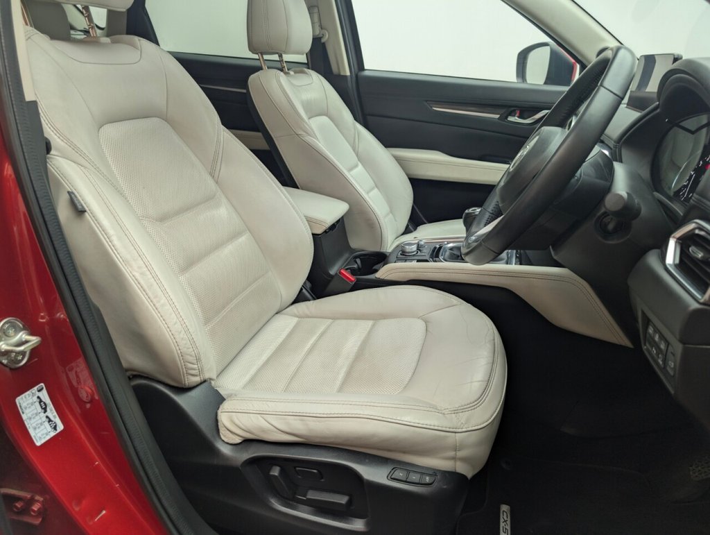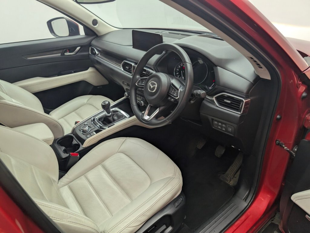 10.25in TFT Colour Centre Display with Mazda Connect Infotainment, 19in Alloy Wheels - Silver, 7in Colour TFT Display, ABS - Anti Lock Braking System, Advanced Smart City Brake Support, AM-FM-DAB Radio - Featuring 10 Bose Speakers, Apple CarPlay and Android Auto, Auto Dimming Rear View Mirror, Auxiliary - AUX - and Two USB Input, Blind Spot Monitoring with Rear Cross Traffic Alert, Bumper - Front Body Coloured with Black Lower Mouldings, Bumper - Rear Body Coloured with Black Lower Moulding, Colour Active Driving Display, Digital Instrument Cluster, Door Mirrors - Electrically Adjustable - Heated - Auto Power Folding with Integrated Indicator Lights, Door Pockets - Driver and Front Passenger, Drivers Seat - Power Slide - Recline - Height and Lumbar Adjustment with Memory Function linked to Smart Key, DSC - Dynamic Stability Control, Dual Chrome Exhaust Tailpipe, Dual Front Airbags, Dual Zone Climate-Controlled Air-Conditioning with Rear Air Vents, EBD - Electronic Brakeforce Distribution, Electric Windows - Front and Rear with One-Touch Auto Down - Up, Electronic Parking Brake with Auto Hold Function, Electronic Parking Brake with Auto-Disengage Function, Emergency Stop Signalling System - ESS, Emergency Tyre Repair Kit, Engine Start-Stop Button, Front and Rear Curtain Airbags, Front Centre Storage with Two Cupholders, Front Fog Lights - LED, Front Passenger Airbag Cut-Off Switch, Front Passengers Seat Power Slide Recline and Height Adjustment, Front Side Airbags, Front Wiper De-Icer, Gear Shift - Leather-Wrapped, Gear Shift Indicator, Glovebox with Interior Illumination, Grab Handles - Front Passenger and Two Rear with Coat Hooks, Headlights - Adaptive Front Lighting System, Headlights - Coming-Leaving Home, Headlights - Dusk-Sensing Lights, Headlights - LED with Auto Headlight Levelling, Heated Front Seats with 3-Stage Settings, Heated Steering Wheel, High Beam Control, Hill Hold Assist, Instrument Panel and Door Trim - Wood Grain Metal, Integrated Bluetooth System, Intelligent Speed Assist, Interior LED Lighting, ISOFIX Child Seat Anchorage for Outer Rear Seats, Karakuri Tonneau Cover, Lane Keep Assist with Lane Departure Warning System, LED 3rd Brake Light, LED Rear Signature Combination Lights, LED Signature Daytime Running Lights, Luggage Compartment - Light, Luggage Compartment - Power Outlet, Mazda Navigation System - European Mapping with Alternative Route Calculations - Point of Interest Search and 5-Years Free Map Updates, Mazda Radar Cruise Control, Mobile Phone App Interface, Multimedia Commander, Parking Sensors - Front and Rear with Audible Warning, Power Assisted Steering, Power Liftgate, Privacy Glass - Rear and Rear Side Windows, Rain-Sensing Front Wipers, Rear Seats - Manual Recline Adjustment, Remote Central Locking with Deadlocking and Automatic Door Lock when Driving, Reversible Waterproof Carbo Board, Reversing Camera, Roof Headlining - Light - Ceiling and Pillars, Roof Mounted Sunglasses Holder, SCR - Secondary Collision Reduction, Seat - 40-20-40 Karakuri Fold Flat Rear, Seatback Pocket - Driver and Front Passenger, Seatbelt Reminder Audible Warning - Driver-Passenger and Rear Seat, Seatbelts - Front - 3 Point - ELR x 2 with Pre-Tensioners, Seatbelts - Rear - 3-Point - ELR, Seats Rear - Folding Centre Armrest Equipped with USB Input, Shark Fin Antenna, Smart Brake Support with Forward Obstruction Warning, Smart Keyless Entry, Steering Wheel - Leather Wrapped, Steering Wheel - Mounted Audio and Bluetooth Controls, Steering Wheel - Tilt and Height Adjustment, Sunroof - Power Tilt and Slide, Sunvisors - Drivers and Front Passengers with Covered Vanity Mirror and Drivers Ticket Holder, TCS - Traction Control System, Thatcham Accredited Alarm and Immobiliser, Three Height Adjustable Head Restraints, Trip Computer, Tyre Pressure Monitoring System, Wipers - Rear Adjustable Speed with IntermittentThis car includes £0 worth of Factory Fitted Extras