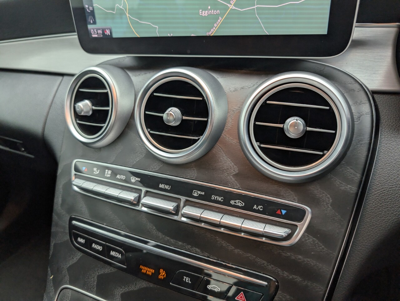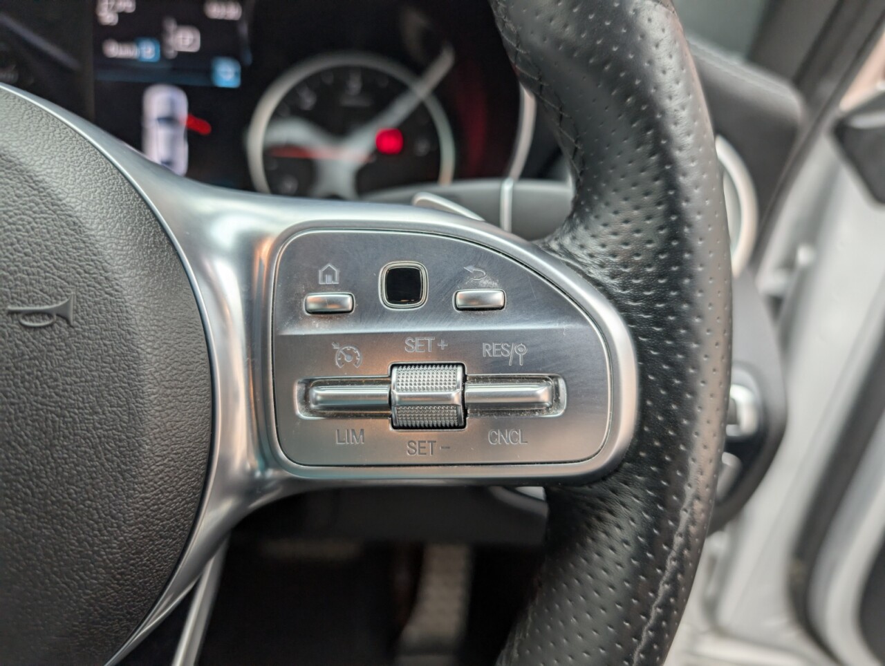 - Steering Wheel - 3-Spoke Multi-Function AMG in Leather with Flattened Bottom Section - Chrome Inserts and Perforated Leather in Grip Area