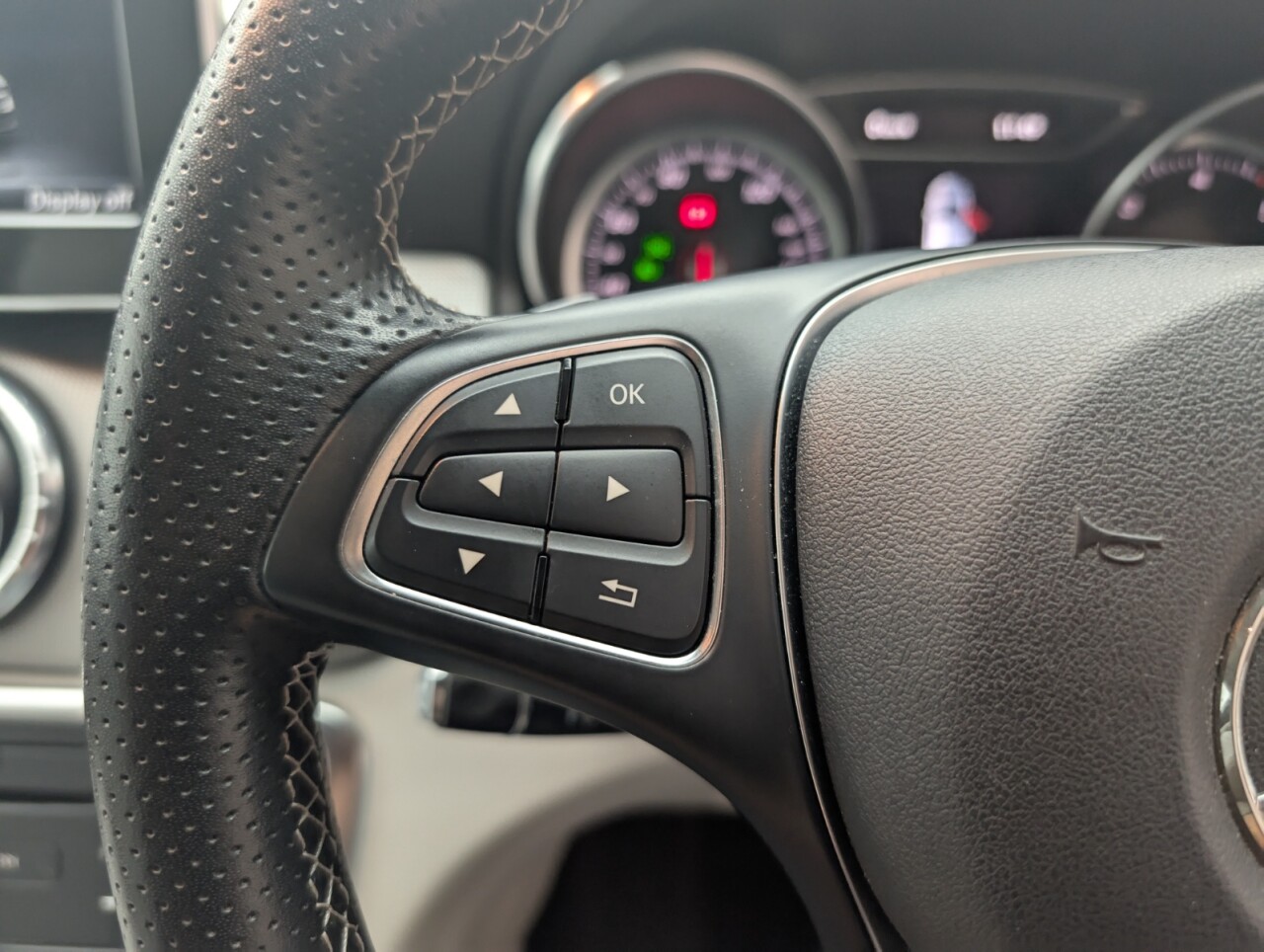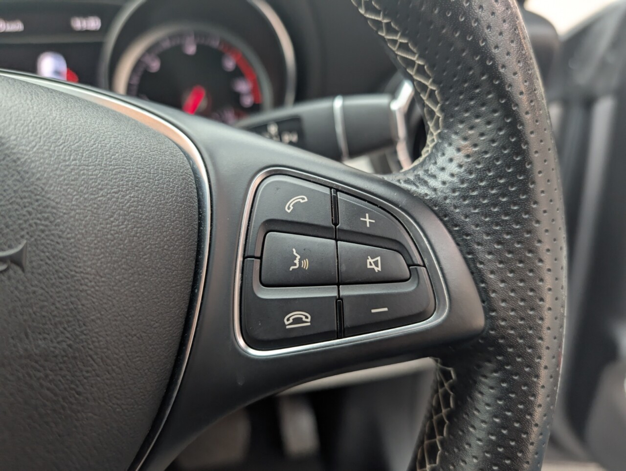- Steering Wheel - 3-Spoke Leather - 12-Button Multi-Function with Silver Chrome Trim and Perforated Grip Area and Contrast Stitching