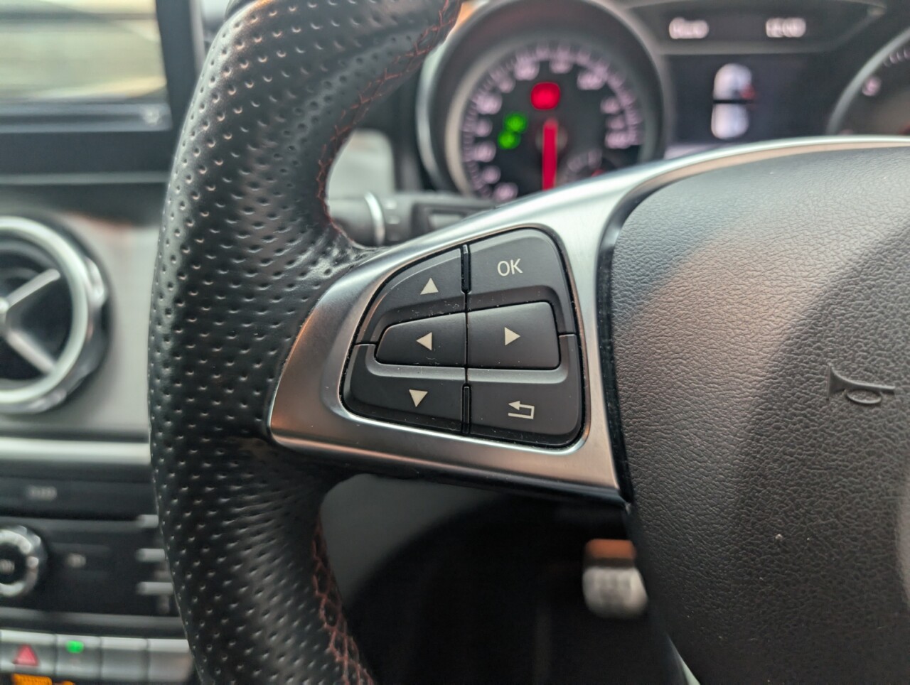 - Steering Wheel - 3-Spoke - 12 Button Multi-Function - Trimmed in Nappa Leather with Perforated Leather in Grip Area - Flattened Bottom Section