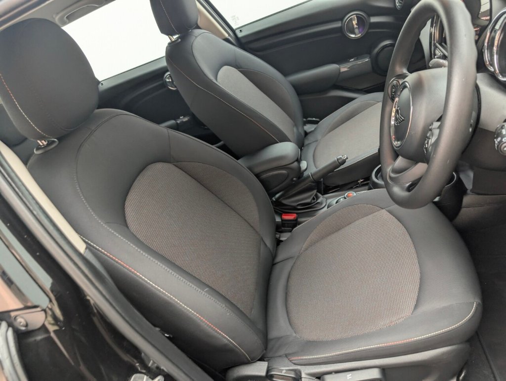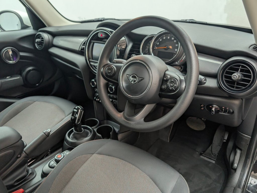 12V Socket in Centre Console, 15in Alloy Wheels - Heli Spoke, 17in Alloy Wheels - Cosmos Spoke in Black, 3 Point Seatbelts on all Seats, 4 Lashing Eyes in Luggage Compartment, 6 Speakers - in Front Door Trims and Underneath Front Seats, 6.5in Screen with LED Ring, Air Conditioning - Manual, Airbags, Alarm System, Anti-Lock Braking System - ABS, Automatic Headlight Activation Switch, Bluetooth for Compatible Mobile Phone - with Audio Streaming, Bonnet Stripes - White, Carbon Black Colour Line - Knee Roll and Door Armrests, Chrome Highlights, Comfort Pack, Cup Holders, Door Sill Strips - Metal with MINI, Door Storage Compartments, Dynamic Brake Lights, Dynamic Stability Control - DSC, Electric Windows, Electro-Mechanical Steering with Speed Dependant Steering Assistance, Electronic Vehicle Immobiliser, Exhaust Tailpipe - Left with Chrome Finisher, Firework Cloth - Carbon Black, FM Tuner and DAB Digital Radio, Foldable Rear Seats 60-40, Front and Rear ISOFIX - including Front Passenger Airbag Deactivation, Fuel Filler Cap in Body Colour, Glove Compartment, Headliner - Satellite Grey, Heated Rear Window, Heated Windscreen Washer Jets, Instrument Cluster, Interior Lighting, Interior Surface - Hazy Grey, Leatherette Gearshift Lever and Handbrake Gaiters, LED Headlights with Closed Ring as Daytime Driving Lights, LED Reading Lights - Vanity Mirror Lights - Front Footwell Lights - Spotlights on Front Seats, Mechanical Seat Adjustment, Midnight Black, MINI E-Call, MINI Logo Projection on Floor from Drivers Exterior Mirror, MINI TeleServices, Model Logo Cooper on Right of Tailgate, Multifunction Controls for Steering Wheel, On-Board Computer, Radiator Grille - Chrome Border with Black High-Gloss Slats, Rain Sensor Window Wipers, Rear Fog Light, Rear LED Lights with Union Jack Design, Rear Window Wiper, Roof and Mirror Caps - Body-Colour, Roof and Mirror Caps - White, Side Scuttle Panels with Integrated Indicators, Single Tone Fanfare Horn, Start-Stop Toggle including Keyless Go, Steering Column Height and Length Adjustment, Steering Wheel - 3-Spoke, Sun Visor with Vanity Mirrors, Sun-Heat Protection Glass, Tool Kit in Luggage Compartment, Tyre Pressure Monitoring System, White Direction Indicators LightsThis car includes £2,675 worth of Factory Fitted Extras