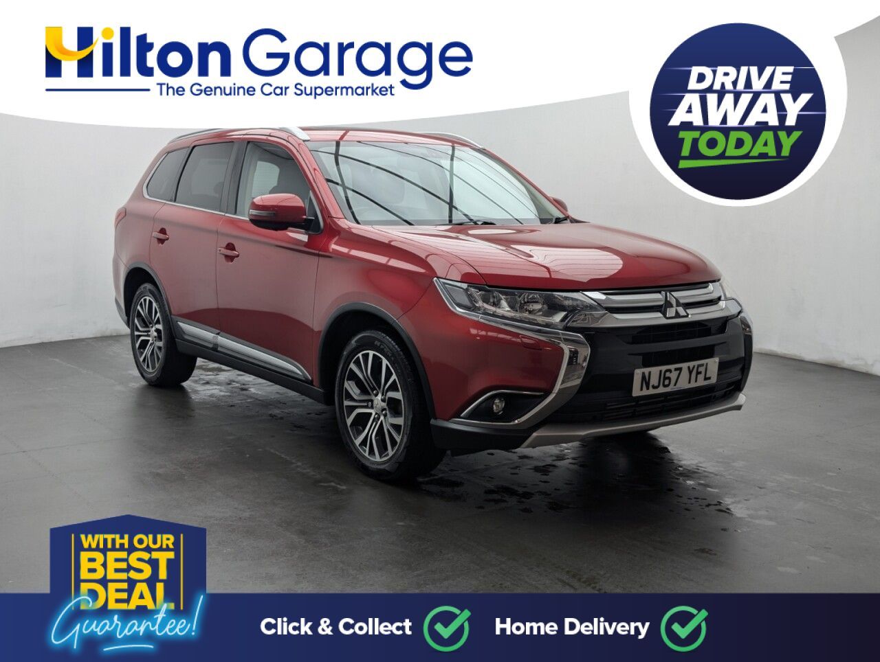 Great looking Mitsubishi Outlander in Red with DAB Radio - Cruise Control - 18" Alloy Wheels - Bluetooth - SAT NAV - Privacy Glass - Climate Control Last serviced 24/09/25 at 55800 miles. Versatile and reliable, the Mitsubishi Outlander features a 2.2L diesel engine with 147 PS and automatic 4WD transmission. Euro 6 compliant, this SUV delivers spacious interior, advanced safety features, and confident performance, perfect for family adventures and all-road driving.