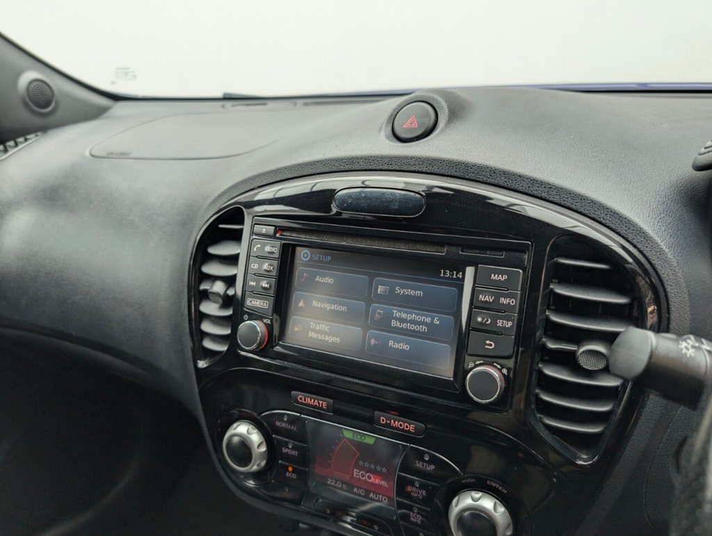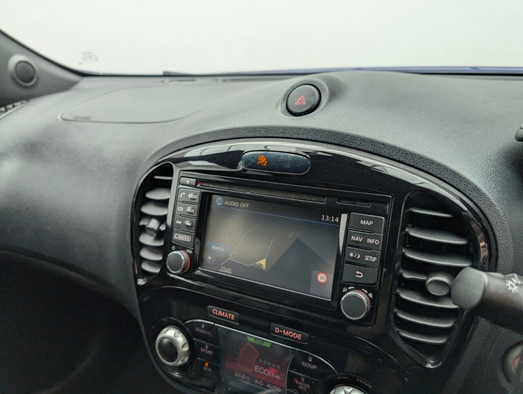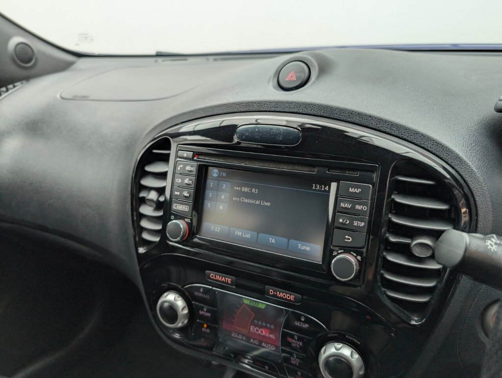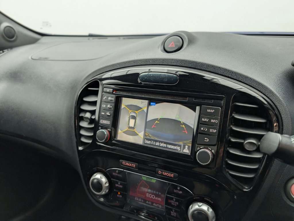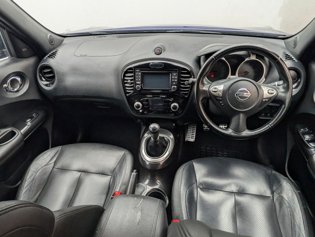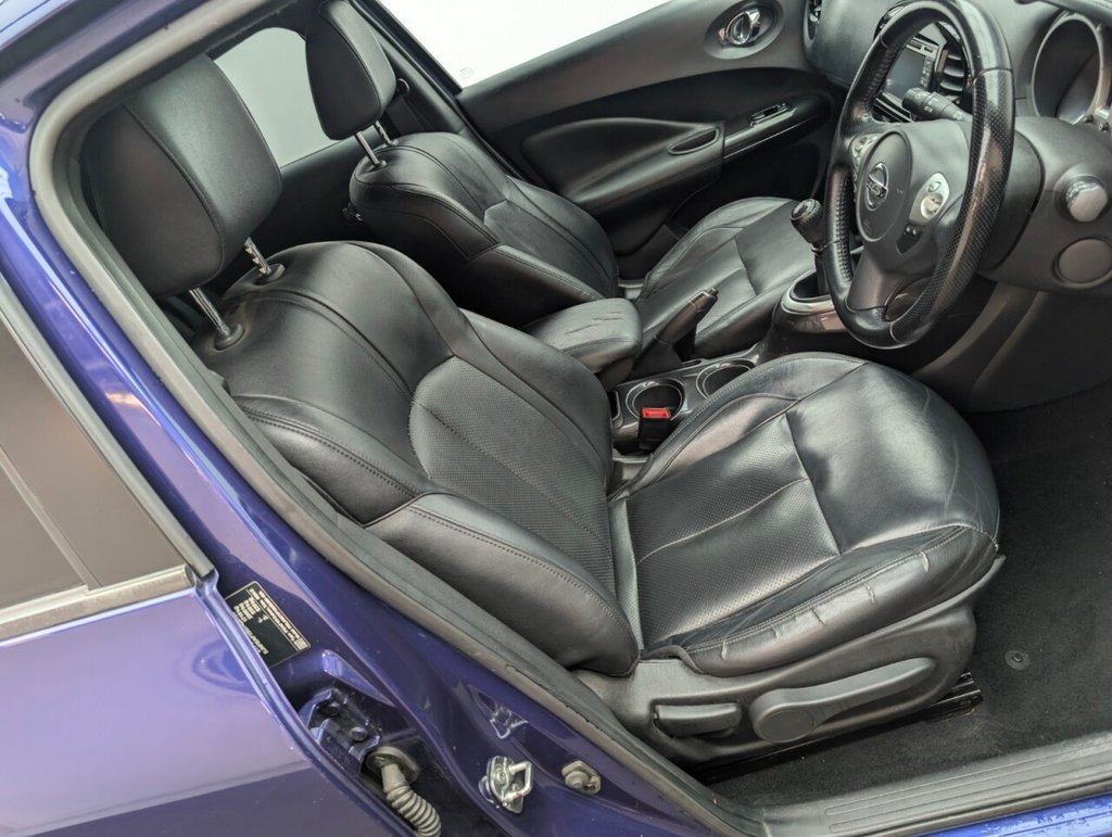 Great looking Nissan Juke in Blue with 17" Alloy Wheels - Climate Control - Cruise Control - DAB Radio - Bluetooth - Heated Seats - Privacy Glass Last serviced 26/09/25 The Nissan Juke 1.2 DIG-T Tekna delivers 115ps of turbocharged petrol power in a bold, compact SUV design. With a manual gearbox, Euro 6 compliance, and premium features like leather seats, touchscreen, and 360° camera, it's stylish, efficient, and packed with tech—perfect for urban drivers who want flair and functionality.