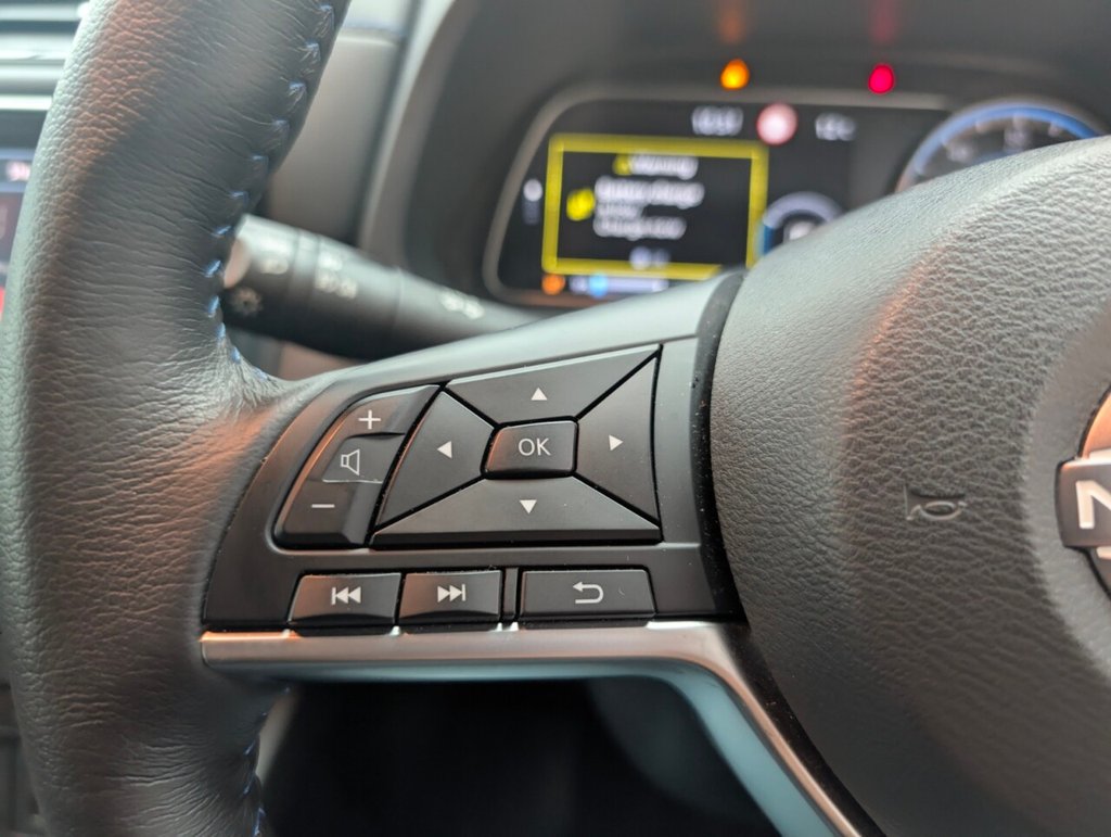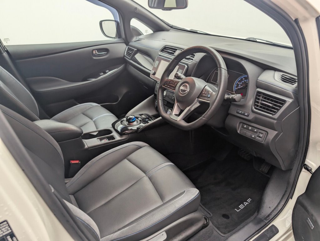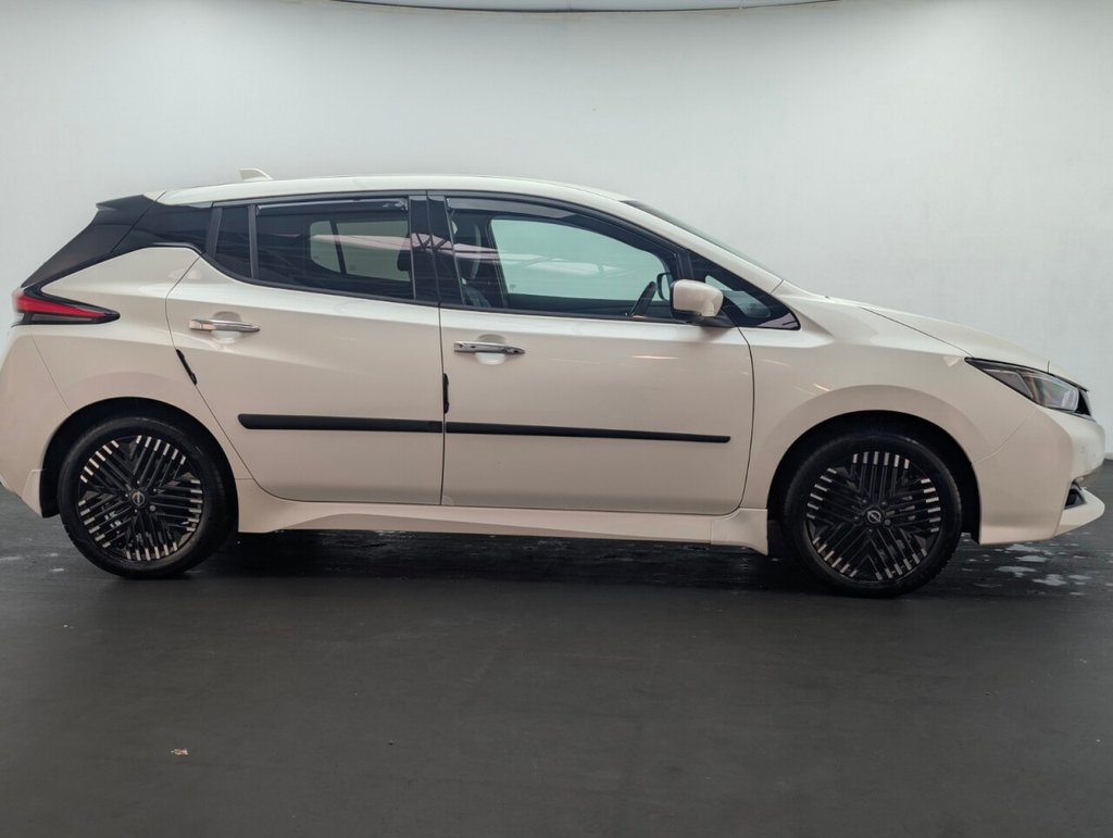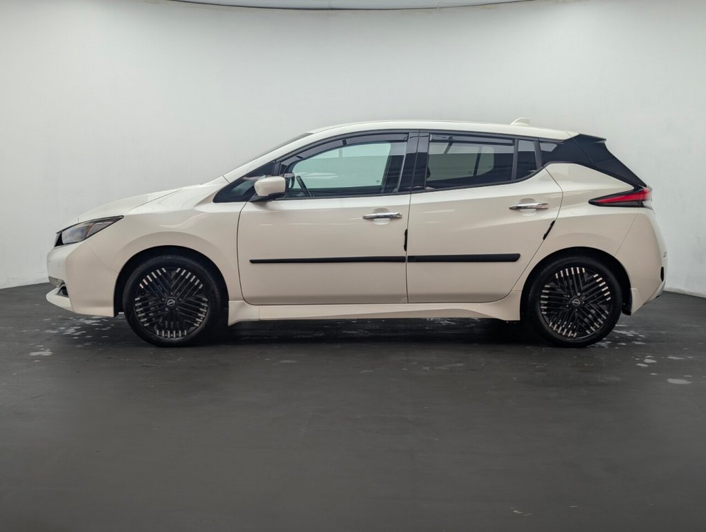 17in Alloy Wheels - Black Diamond Cut, 50kW CHAdeMO Quick Charger, 6 Airbags, 6.6kW AC On Board Charger, 6m Type 2 Cable, 7in Combimeter, 8in Colour Display with Touch Screen, ABS with EBD and Brake Assist, Alarm - Thatcham, Android Auto and Apple CarPlay, Auto Dimming Rear View Mirror, Auto Hazard Lights, Automatic Climate Control with Pollen Filter and Timer, Blind Spot Intervention, Bluetooth with Audio Streaming, Body Coloured Door Mirrors, BOSE Premium Audio System with 7 Speakers, Charging Port Remote Opening, Digital Radio - DAB, Door Handles - Chrome, E-Pedal, Electric Power Steering, Electrically Driven Intelligent Braking System, Energy-Saving Cabin Heating System with Heat Pump, ESP - Electronic Stability Programme, EV Connect Telematics System, Front Electric Windows, Headlights - Follow Me Home Function, Headlights - High Beam Assist, Heat Pack, Hill Start Assist, Illuminated Charge Port, Immobiliser, Integrated Turn Signals in Mirrors, Intelligent Auto Headlights, Intelligent Cruise Control, Intelligent Emergency Braking with Pedestrian Recognition, Intelligent Key with Start Push Button, Intelligent Lane Intervention, Intelligent Ride Control, Intelligent Trace Control, ISOFIX on Rear, Lane Departure Warning, Leather Steering Wheel, LED Pack, LED Signature Daytime Running Lights, LED Signature Tail Lights, MacPherson Strut Front Suspension and Twist Beam Axle Rear Suspension, Multifunctional Steering Wheel, Navigation System with Voice Control, NissanConnect Services App, ProPilot Pack, Rain Sensing Windscreen Wipers, Rear Bumper Finisher - Grey, Rear Cross Traffic Alert, Rear Door Child Locks, Rear Privacy Glass, Rear USB Ports, Remote Central Locking with Deadlocking, Roof Spoiler - Aero, Shark Fin Antenna, Speed Limiter, Tech Pack, Telescopic Steering Wheel Adjustment, TPMS - Tyre Pressure Monitoring System, USB PortThis car includes £0 worth of Factory Fitted Extras