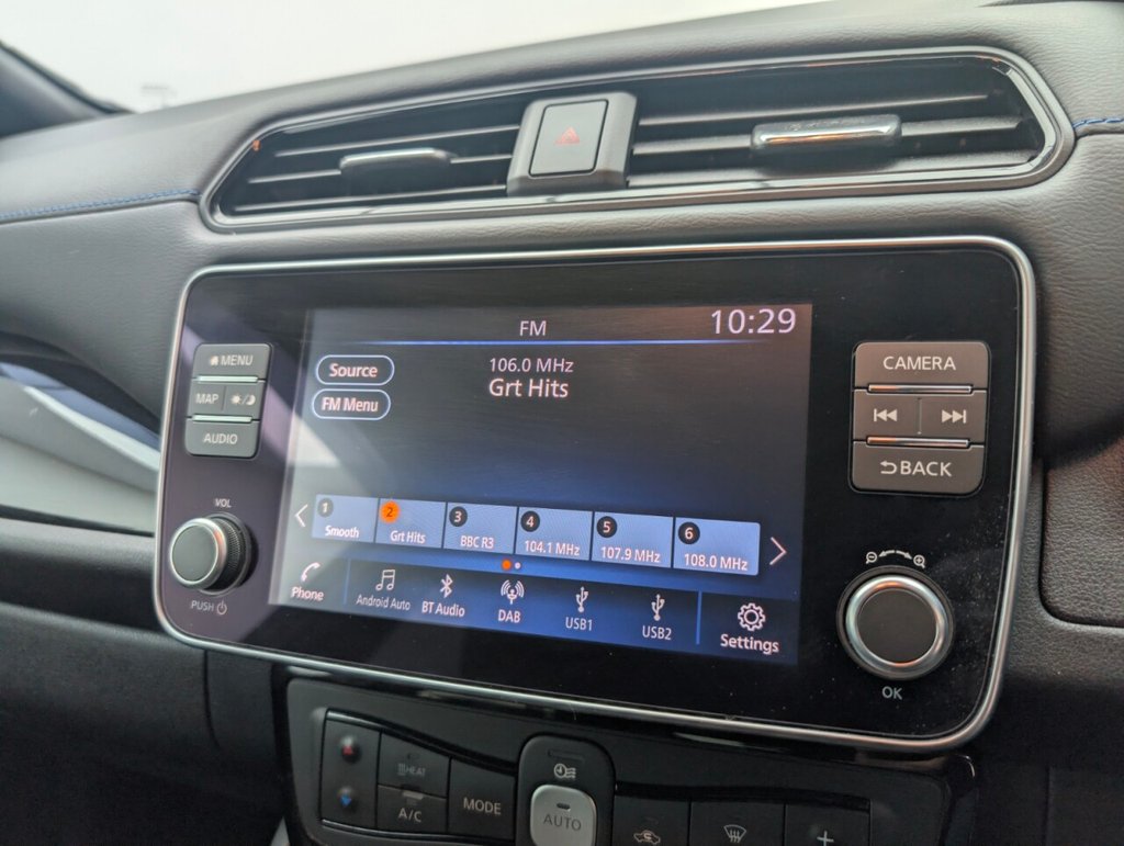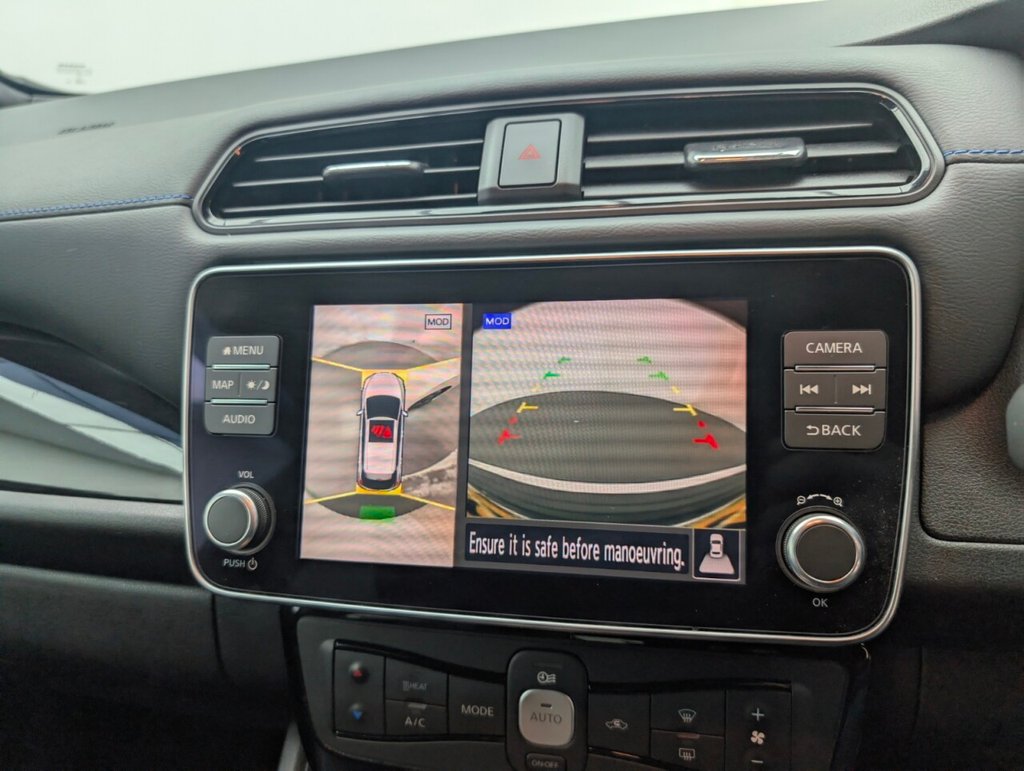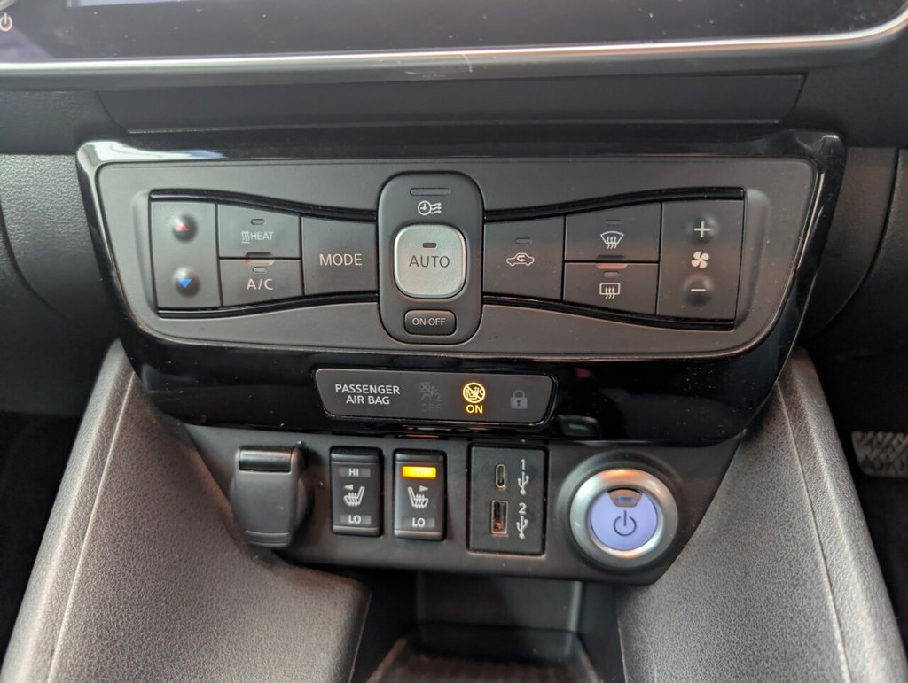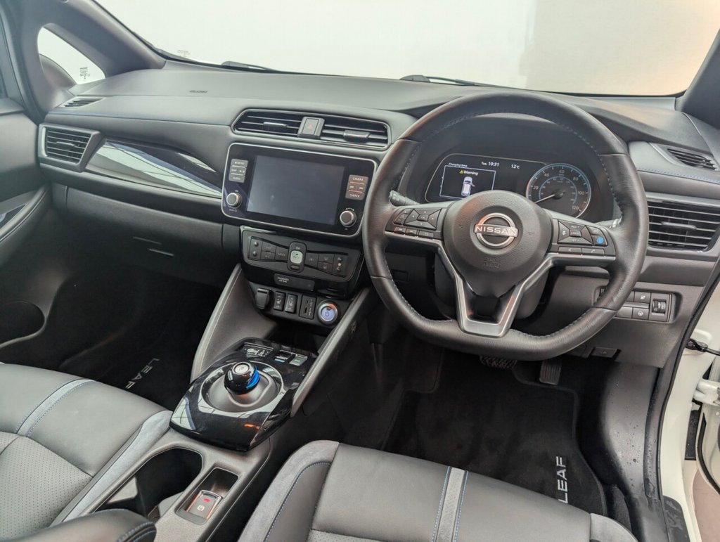 17in Alloy Wheels - Black Diamond Cut, 50kW CHAdeMO Quick Charger, 6 Airbags, 6.6kW AC On Board Charger, 6m Type 2 Cable, 7in Combimeter, 8in Colour Display with Touch Screen, ABS with EBD and Brake Assist, Alarm - Thatcham, Android Auto and Apple CarPlay, Auto Dimming Rear View Mirror, Auto Hazard Lights, Automatic Climate Control with Pollen Filter and Timer, Blind Spot Intervention, Bluetooth with Audio Streaming, Body Coloured Door Mirrors, BOSE Premium Audio System with 7 Speakers, Charging Port Remote Opening, Digital Radio - DAB, Door Handles - Chrome, E-Pedal, Electric Power Steering, Electrically Driven Intelligent Braking System, Energy-Saving Cabin Heating System with Heat Pump, ESP - Electronic Stability Programme, EV Connect Telematics System, Front Electric Windows, Headlights - Follow Me Home Function, Headlights - High Beam Assist, Heat Pack, Hill Start Assist, Illuminated Charge Port, Immobiliser, Integrated Turn Signals in Mirrors, Intelligent Auto Headlights, Intelligent Cruise Control, Intelligent Emergency Braking with Pedestrian Recognition, Intelligent Key with Start Push Button, Intelligent Lane Intervention, Intelligent Ride Control, Intelligent Trace Control, ISOFIX on Rear, Lane Departure Warning, Leather Steering Wheel, LED Pack, LED Signature Daytime Running Lights, LED Signature Tail Lights, MacPherson Strut Front Suspension and Twist Beam Axle Rear Suspension, Multifunctional Steering Wheel, Navigation System with Voice Control, NissanConnect Services App, ProPilot Pack, Rain Sensing Windscreen Wipers, Rear Bumper Finisher - Grey, Rear Cross Traffic Alert, Rear Door Child Locks, Rear Privacy Glass, Rear USB Ports, Remote Central Locking with Deadlocking, Roof Spoiler - Aero, Shark Fin Antenna, Speed Limiter, Tech Pack, Telescopic Steering Wheel Adjustment, TPMS - Tyre Pressure Monitoring System, USB PortThis car includes £0 worth of Factory Fitted Extras