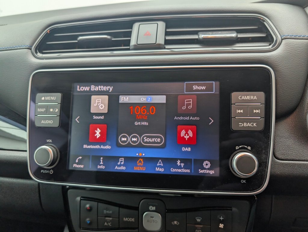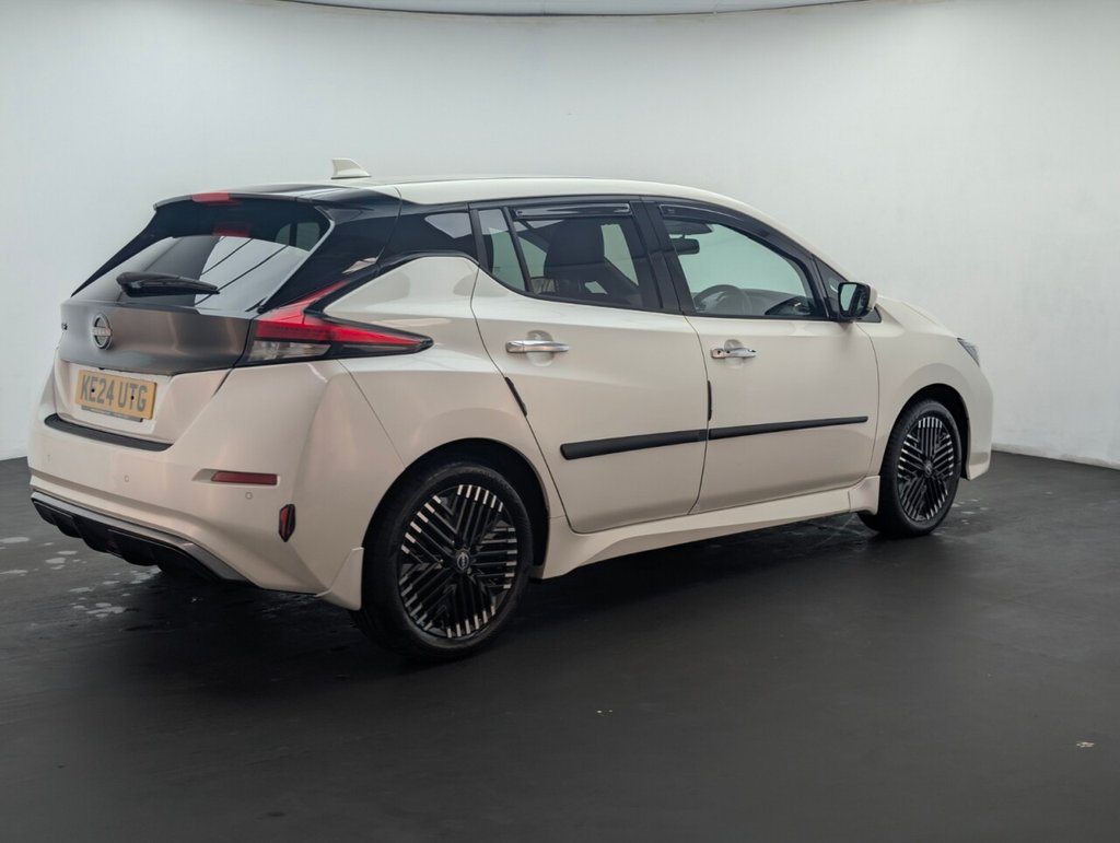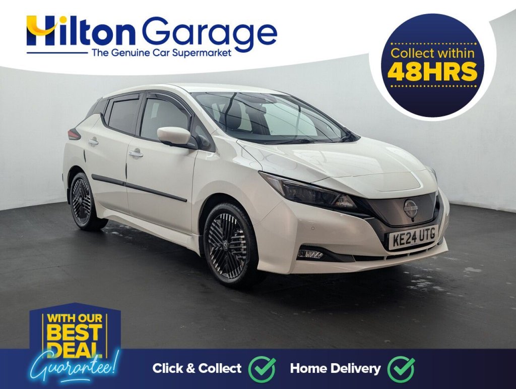 17" alloys, Navigation, Heated seats, Parking camera and Upgraded sound system. Last service done at 4084 miles on 28/06/2025. This 2024 Nissan Leaf Tekna presents an exceptional opportunity with its remarkably low mileage of just 5783 miles, making it a standout choice for discerning buyers. As an electric vehicle, it boasts a 41 kWh battery offering a maximum range of 168 miles when new. This Tekna trim level comes equipped with a suite of intelligent features designed for convenience and connectivity, including Android Auto and Apple CarPlay, intelligent auto headlights, and Bluetooth with audio streaming. You'll also appreciate the automatic climate control with pollen filter and timer, and the intelligent key with a push button start for effortless entry and ignition. The Nissan Leaf Tekna excels in practicality, offering a generous boot space perfect for everyday needs and longer journeys. Charging is straightforward, with a full charge at home using a 7kW charger taking approximately 7 hours and 30 minutes, while rapid public charging can take you from empty to 80% in just 1 hour and 20 minutes. These features, combined with its electric powertrain and advanced technology, position this Leaf as a superior option for those seeking an efficient, modern, and well equipped vehicle.
