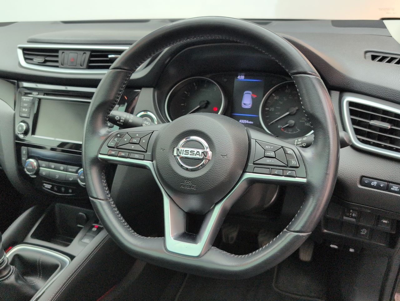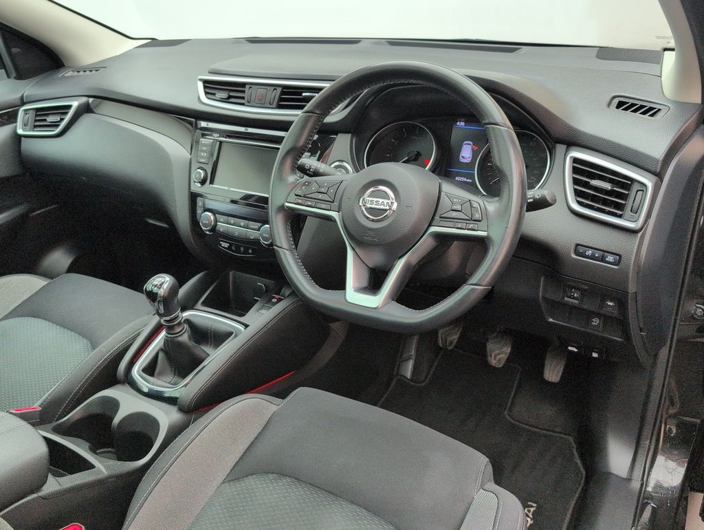 18in Alloy Wheels, 3 Height Adjustable Rear Headrests, 6 Speakers, 60-40 Split Rear Folding Seats, Advanced Drive Assist Display - 5in TFT Coloured Screen, AM-FM-CD Audio System with DAB, Ambient Lighting Centre Console, Auto Wipers, AutoHold Function - Stand Still Assist, AUX Socket for MP3 Player, Bluetooth with Audio Streaming, Body Coloured Door Mirrors, Body Coloured Handles, Boot Light, Centre Console Storage and Armrest, Chrome Glass Surround, Chrome Interior Door Handles, Cruise Control with Speed Limiter, Daytime Running Lights Dip Function When Turn Signal Applied, Driver Seat Height Adjustment, Driver-Passenger-Side and Curtain Airbags, Drivers Seat with Manual Lumbar Support, Dual Zone Climate Control Air Conditioning, Electric Heated Auto-Folding Door Mirrors, Electric Parking Brake, Electric Speed-Sensitive Power Steering, ESP ABS EBD and Brake Assist, Front 12v Power Sockets x2, Front and Rear Door Pockets with Drink Holders, Front and Rear Electric Windows, Front and Rear Seat Belts with Load Limiter and Pretensioners, Front and Rear Seatbelt Warning, Front Fog Lights, Glossy Black Dash Trim, Halogen Headlamps, Height Adjustable Front Head Restraints, Height Adjustable Front Seatbelts, Hill Start Assist, Intelligent Around View Monitor, Intelligent Auto Headlight, Intelligent Park Assist, Interior Ambient Lighting, ISOFIX Child Seat Anchoring Points - Rear x2, Leather D Shaped Steering Wheel, Leather Gear Lever, Leather Knee Pad, LED Daytime Running Lights, Luggage Board System, Matt Silver Roof Rails, Nissan Anti Theft System Immobiliser, Nissan Chassis Controls, Nissan Connect 7in Touchscreen Navigation and Entertainment System, Nissan Intelligent Key, One Touch 4 x Auto Windows with Illuminated Switches, Outside Temperature Sensor, Parcel Shelf - Stow Function Under Luggage Board, Passenger Airbag Deactivation System, Passengers Seat with Manual Lumbar Support, Pollen Filter, Puncture Repair Kit, Rear Door Child Locks, Rear Roof Spoiler, Rear USB Port, Rear View Camera, Rear Wiper with Reverse Link, Remote Audio Control, Remote Central Locking with Superlocking, Safety Shield Plus, Seats - Passengers Height Adjustment, Selectable Steering - Normal or Sport, Smart Vision Pack, Smartphone App Integration, Start Push Button, Steering Wheel Mounted Audio Controls, Synthetic Leather Wrapped Door Handle with Contrasting Stitching, Tech Pack, Thatcham Category 1 Alarm, Tilt and Telescopic Adjustable Steering Wheel, TPMS - Tyre Pressure Monitoring System, Trip Computer, Underbody Vortex Generators, USB PortThis car includes £0 worth of Factory Fitted Extras