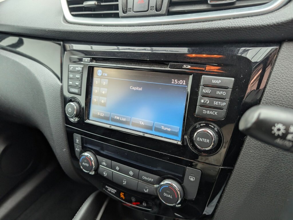 17in Alloy Wheels, 3 Height Adjustable Rear Headrests, 6 Speakers, 60-40 Split Rear Folding Seats, Advanced Drive Assist Display - 5in TFT Coloured Screen, AM-FM-CD Audio System with DAB, Ambient Lighting Centre Console, Auto Wipers, AutoHold Function - Stand Still Assist, AUX Socket for MP3 Player, Bluetooth with Audio Streaming, Body Coloured Door Mirrors, Body Coloured Handles, Boot Light, Centre Console Storage and Armrest, Chrome Glass Surround, Chrome Interior Door Handles, Cruise Control with Speed Limiter, Daytime Running Lights Dip Function When Turn Signal Applied, Driver Seat Height Adjustment, Driver-Passenger-Side and Curtain Airbags, Drivers Seat with Manual Lumbar Support, Dual Zone Climate Control Air Conditioning, Electric Heated Auto-Folding Door Mirrors, Electric Parking Brake, Electric Speed-Sensitive Power Steering, ESP ABS EBD and Brake Assist, Front 12v Power Sockets x2, Front and Rear Door Pockets with Drink Holders, Front and Rear Electric Windows, Front and Rear Seat Belts with Load Limiter and Pretensioners, Front and Rear Seatbelt Warning, Front Fog Lights, Halogen Headlamps, Height Adjustable Front Head Restraints, Height Adjustable Front Seatbelts, Hill Start Assist, Intelligent Auto Headlight, Interior Ambient Lighting, ISOFIX Child Seat Anchoring Points - Rear x2, Leather D Shaped Steering Wheel, Leather Gear Lever, Leather Knee Pad, LED Daytime Running Lights, Nissan Anti Theft System Immobiliser, Nissan Chassis Controls, Nissan Connect 7in Touchscreen Navigation and Entertainment System, One Touch 4 x Auto Windows with Illuminated Switches, Outside Temperature Sensor, Parcel Shelf - Stow Function Under Luggage Board, Passenger Airbag Deactivation System, Piano Black Dash Trim, Pollen Filter, Puncture Repair Kit, Rear Door Child Locks, Rear Roof Spoiler, Rear View Camera, Rear Wiper with Reverse Link, Remote Audio Control, Remote Central Locking with Superlocking, Seats - Passengers Height Adjustment, Selectable Steering - Normal or Sport, Smart Vision Pack, Smartphone App Integration, Steering Wheel Mounted Audio Controls, Thatcham Category 1 Alarm, Tilt and Telescopic Adjustable Steering Wheel, TPMS - Tyre Pressure Monitoring System, Trip Computer, Underbody Vortex Generators, USB PortThis car includes £0 worth of Factory Fitted Extras