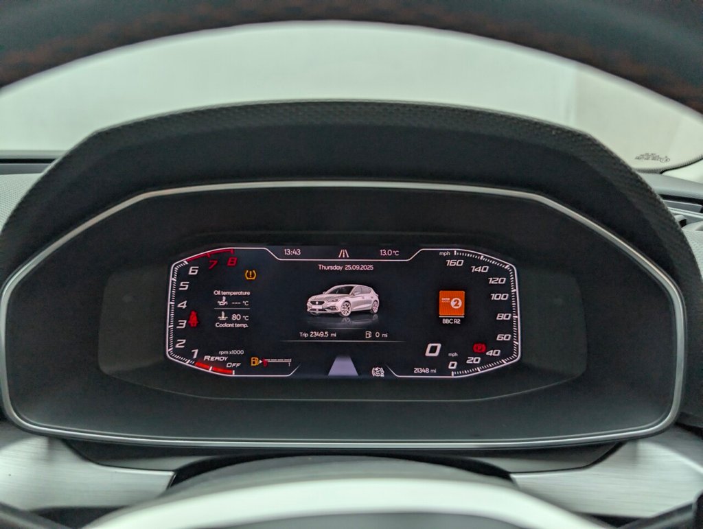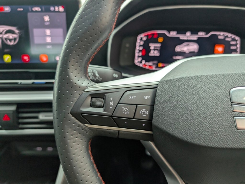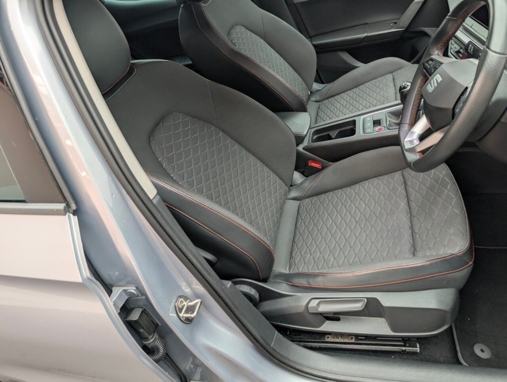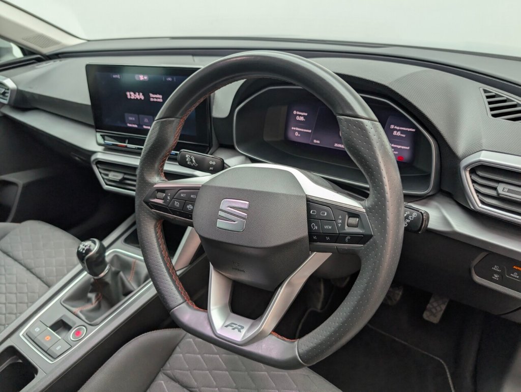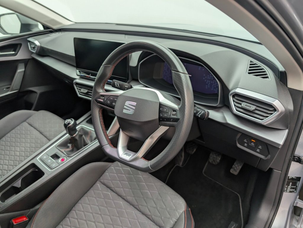 12V Power Supply in Centre Console, 17in Alloy Wheels - Dynamic Bi-Spoke, Ambient Lighting, Anti-Lock Brakes - ABS, Anti-Theft Alarm System - Interior Monitoring - Backup Horn and Towing Protection, Auto Dimming Rear View Mirror, Brake Control System - ESC and Brake Booster, Chrome Interior Detailing, Cruise Control with Speed Limiter, Dark Tinted Rear Windows, Digital Cockpit, Driver and Front Passenger Airbags with Front Passenger Airbag De-Activation - Front Side - Curtain Airbag, Driver and Passenger Seat Manual Height Adjustment, Driver and Passenger Seat with Lumbar Adjustment, Electric Parking Brake, Electrically Adjustable Folding and Heated Door Mirrors, Electro-Mechanical Power Steering - Speed-Sensitive, Emergency Tyre Repair Kit, Extended Safety System, Folding Boot Cover, Four USB Type C Ports, FR Sport Bumpers, Front and Rear Electric Windows, Front and Rear Reading Lights - Four, Front Assist, Front Centre Armrest, Front LED Fog Lights with Cornering Function, Front Seat Back Storage Pockets, Full Link Smartphone Integration - Mirror Link - Wireless Apple CarPlay - Wired Google Android Auto, Illuminated Front Door Sill, Interior Lighting, ISOFIX Points in Outer Rear Seats with Top Tether Anchorage Points, KESSY Go - Keyless Start, Lane Keeping System, Leather Flat Bottomed - Perforated Steering Wheel with Red Stitching and FR Logo, LED Headlights with Dynamic Turn Signals, Lockable Tailgate, Media System Plus with Navigation, Park Assist including Front and Rear Parking Sensors, Rain Sensing Wipers, Rear Bench Seats with 60-40 Split and Armrest, Rear Fog Light, SEAT Connect App, SEAT Drive Profile, Seatbelt Reminder - Front and Rear, Separate Daytime Running Light with Automatic Headlight Control and Automatic Coming Home Feature, Seven Speakers, Sports Suspension, Sunvisors with Illuminated Mirrors, Three-Zone Climate Control, Tiredness Recognition System, Tool Kit, Tyre Pressure Monitoring System, Wireless Device ChargerThis car includes £0 worth of Factory Fitted Extras