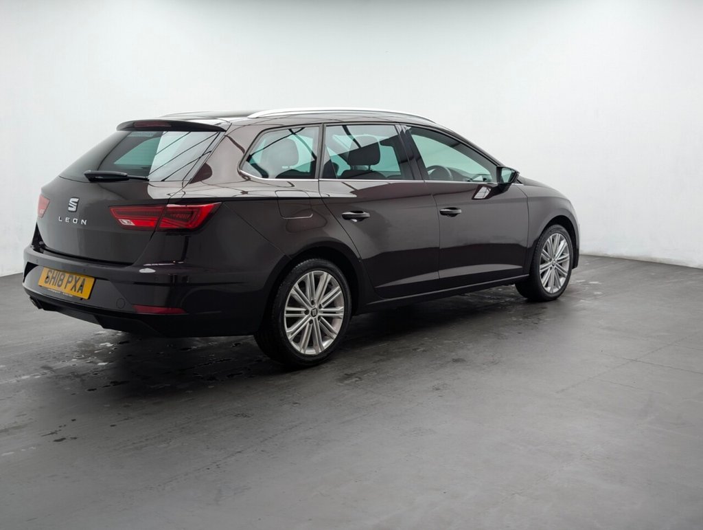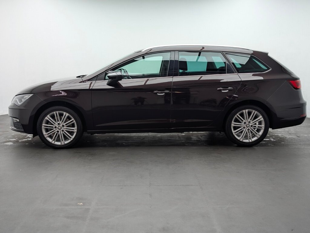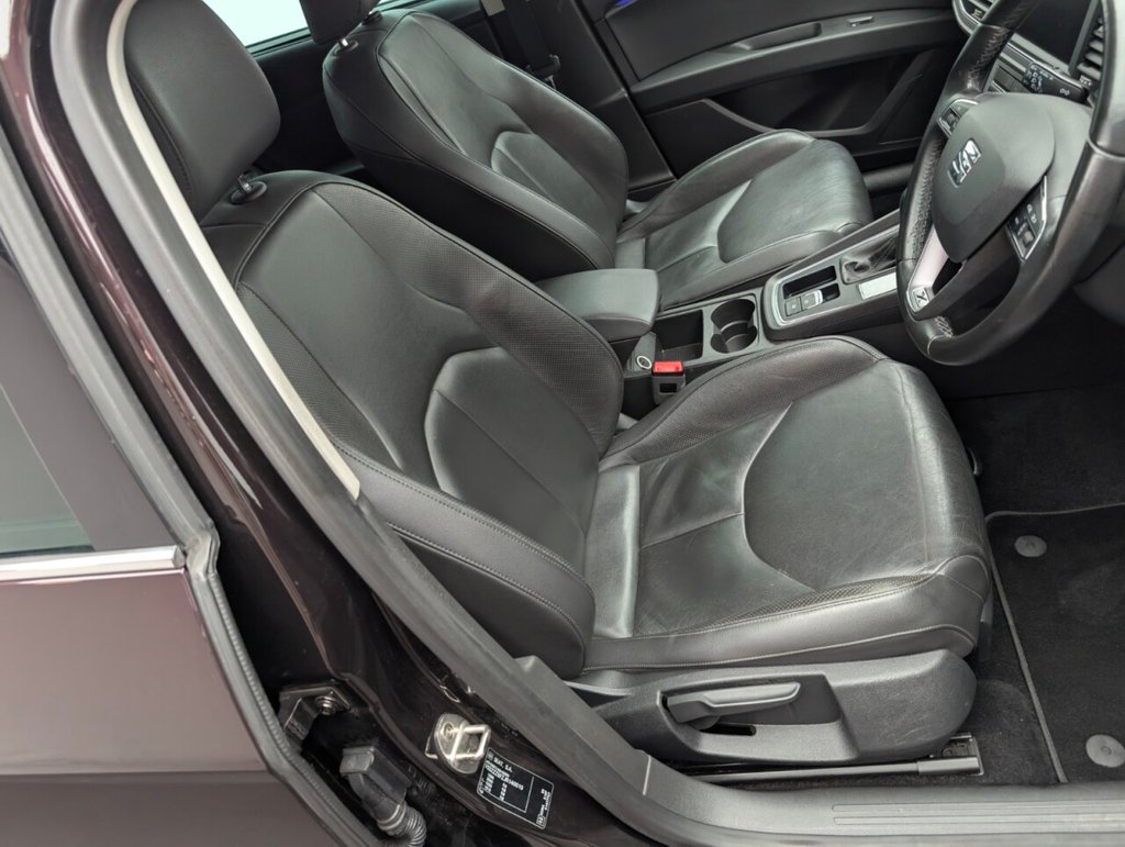 Great looking Seat Leon in Purple with 17" Alloy Wheels - Cruise Control - DAB Radio - SAT NAV - Heated Seats Service History: 23/06/2020 at 10k, 24/06/2022 at 19k, 03/01/2024 at 29k, 29/09/25 at 44789 miles. The SEAT Leon 2.0 TDI XCELLENCE Technology ST delivers 184 PS of diesel power with a smooth DSG automatic gearbox. This stylish 5-door estate offers space, comfort, and advanced tech, all wrapped in a sleek Euro 6-compliant design. Perfect for families or long-distance drivers seeking performance and efficiency.