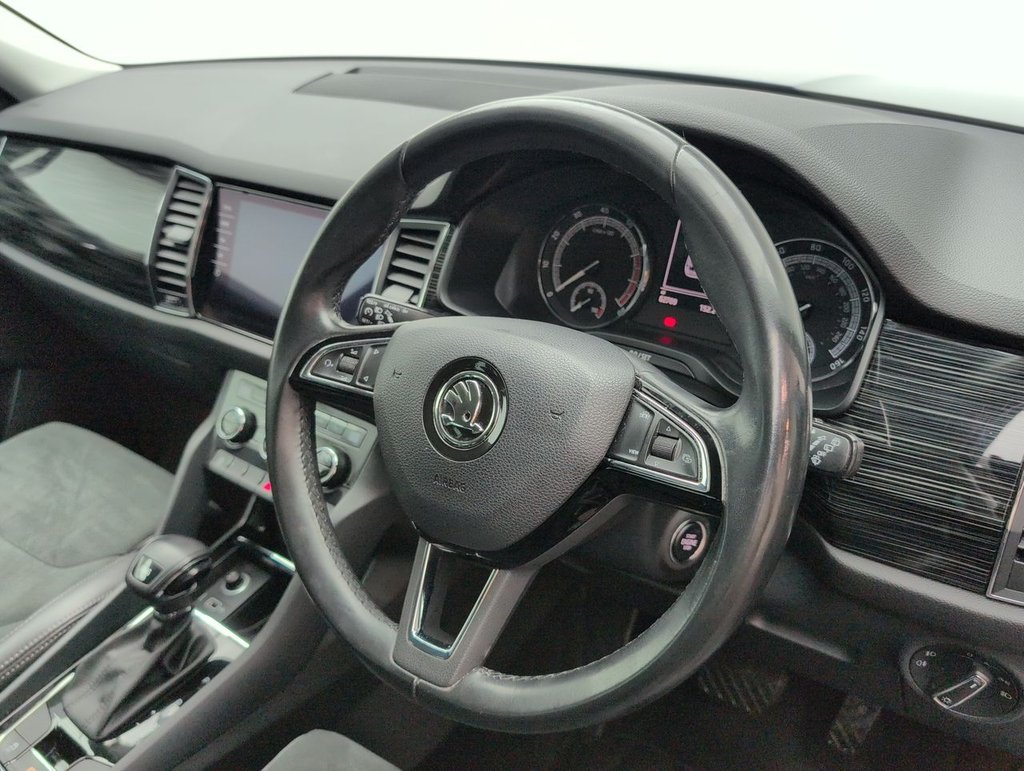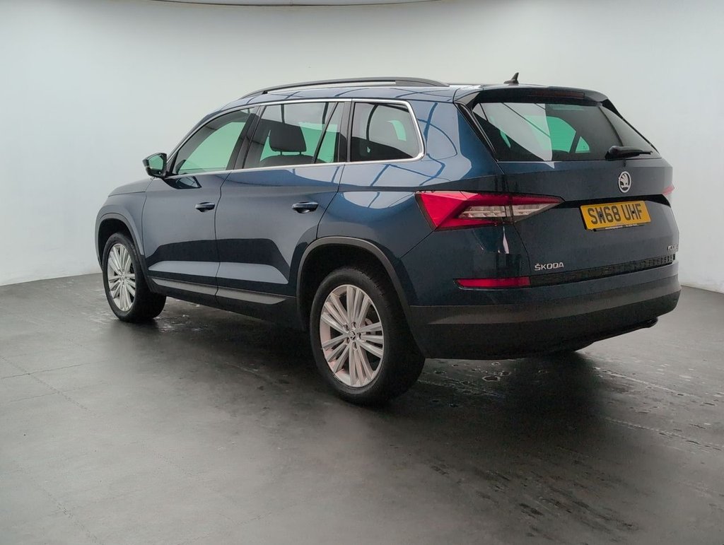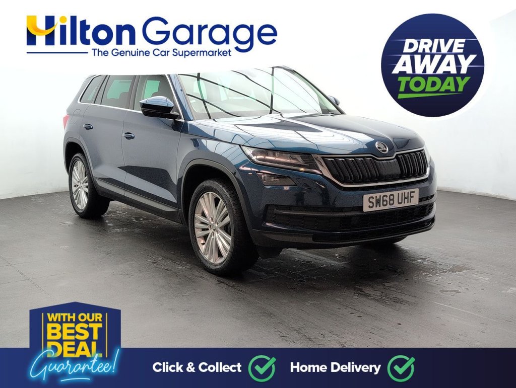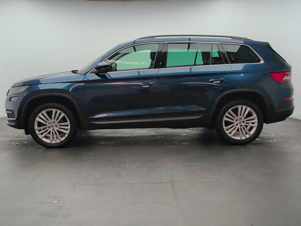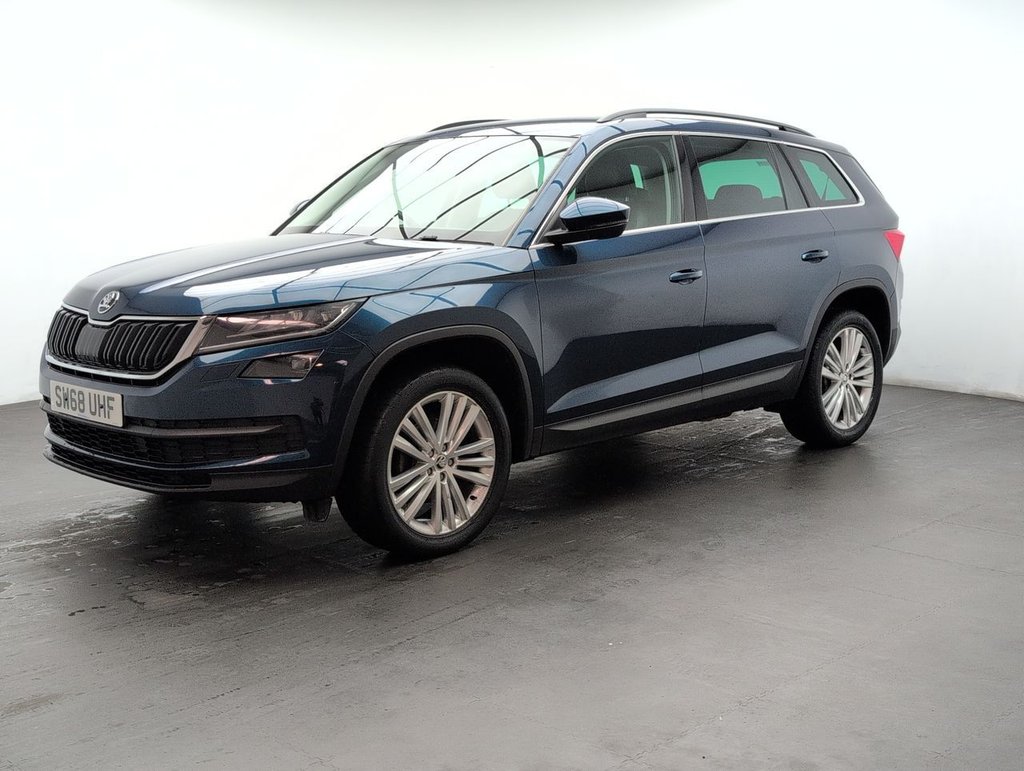 Great looking Skoda Kodiaq in Blue with SAT NAV - Heated Seats - 19" Alloy Wheels - Cruise Control - Bluetooth - Climate Control Service History: 24/09/2020 at 19k, 19/04/2022 at 37k, 11/03/2024 at 49k, 04/03/2025 at 57k, 01/10/25 at 62708 miles. The 7-seat Škoda Kodiaq 1.5 TSI SE L combines space, style, and performance with 150 PS and a smooth DSG auto gearbox. Packed with features, Euro 6 efficiency, and versatile seating, it's the perfect SUV for families who want comfort, practicality, and power in one smart package.