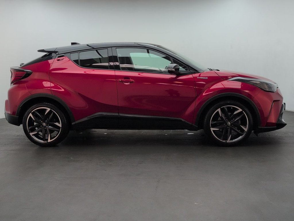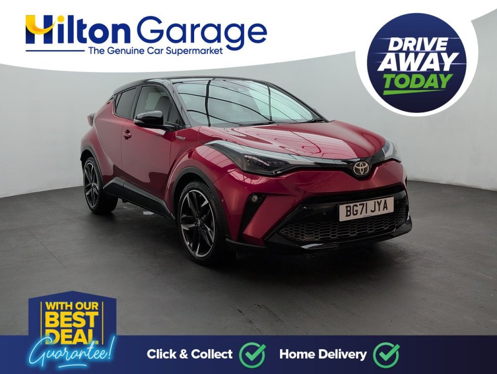 Great looking Toyota C-HR in Red with DAB Radio - Bluetooth - Air Conditioning - 19" Alloy Wheels - Privacy Glass - Apple CarPlay Service History: 08/10/2024 at 12k, 19/07/25 at 14517 miles., 19/07/25 at 14517 miles. The Toyota C-HR 1.8 VVT-h GR SPORT delivers 122PS of hybrid efficiency with a seamless CVT gearbox. Euro 6 compliant, this sporty SUV features GR styling, advanced safety tech, and a smooth, eco-friendly drive—perfect for those who want standout design, everyday practicality, and low emissions in one stylish, modern package.