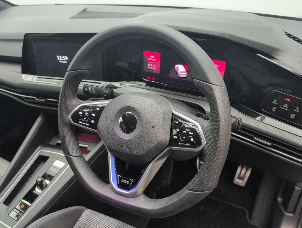 Great looking Volkswagen Golf in Grey with Cruise Control - Climate Control - 17" Alloy Wheels - Privacy Glass - SAT NAV - Wireless Charger Service History: 23/06/2022 at 9k, 17/07/2023 at 19k, 16/07/2024 at 28k, 21/07/2025 at 36k Efficient and sporty, the VW Golf GTE features a 1.4L petrol plug-in hybrid engine with 245 PS and DSG automatic transmission. Euro 6 compliant with start/stop, this 5-door hatchback delivers modern design, advanced tech, and low-emission performance for everyday driving and longer journeys.