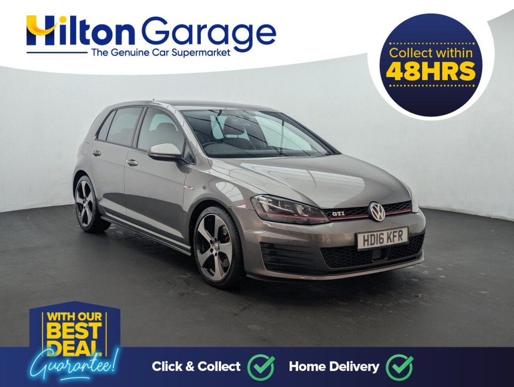Great looking Volkswagen Golf in Grey with 18" Alloy Wheels - Cruise Control - Climate Control - Bluetooth - DAB Radio - Privacy Glass 6 Services, last serviced 29/01/2025 at 59k Feel the thrill with the Volkswagen Golf 2.0 TSI GTI – delivering 220ps of petrol power and sharp handling with a smooth DSG automatic gearbox. Euro 6 compliant with BlueMotion Tech for added efficiency, this iconic 5-door hot hatch blends performance, practicality, and sporty style for an unbeatable driving experience.